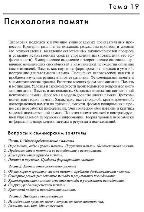 Курс общей психологии - фундаментальный для образования психологов всех специальностей, как исследователей, так и практиков. Трехтомное собрание оригинальных психологических текстов, дополняющее любой базовый учебник по темам и вопросам, определяющим структуру и содержание общей психологии, предназначено для проведения семинарских занятий по этому курсу и самообразования. Большинство текстов написано авторитетными философами, учеными и авторами учебников, имеющими мировое признание. В третьем томе представлен раздел «Субъект познания», который посвящен психологии познания человеком окружающего мира. Он состоит из четырех книг. В этой книге представлены тексты по теме «Психология памяти». Данное учебное пособие подготовлено сотрудниками факультета психологии МГУ имени М. В. Ломоносова для студентов и преподавателей факультетов психологии университетов, а также других высших учебных заведений, в которых изучается психология. Многие тексты этой книги вызовут интерес и у широкого круга читателей.