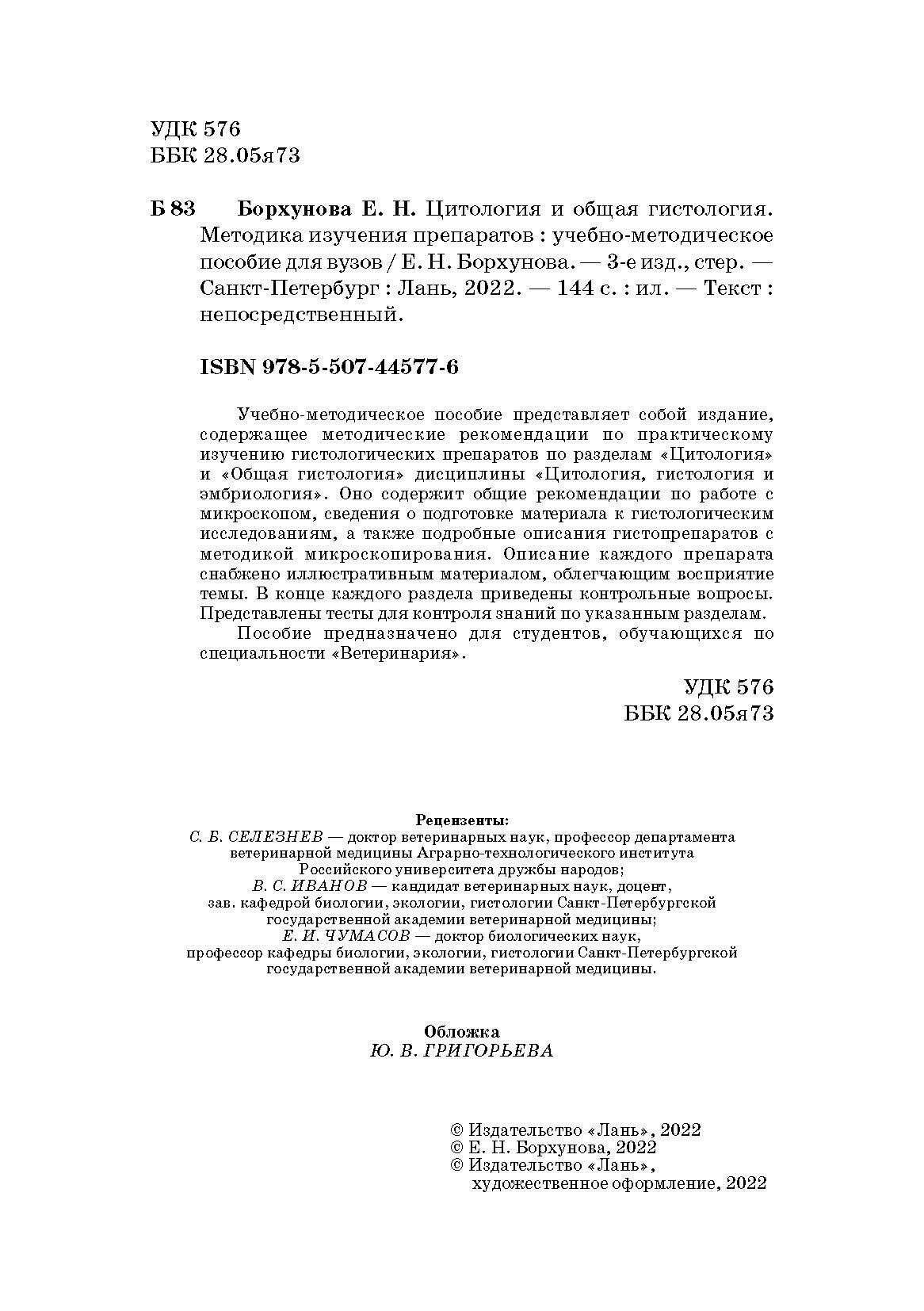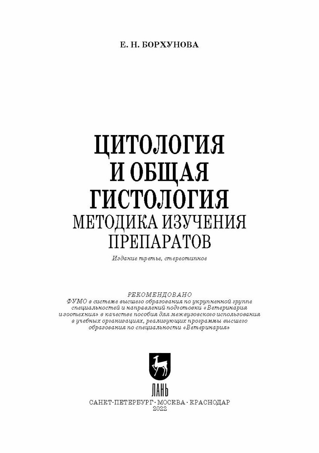 Цитология и общая гистология. Методика изучения препаратов (Е. Н. Борхунова); Издательство ЛАНЬ, 2022