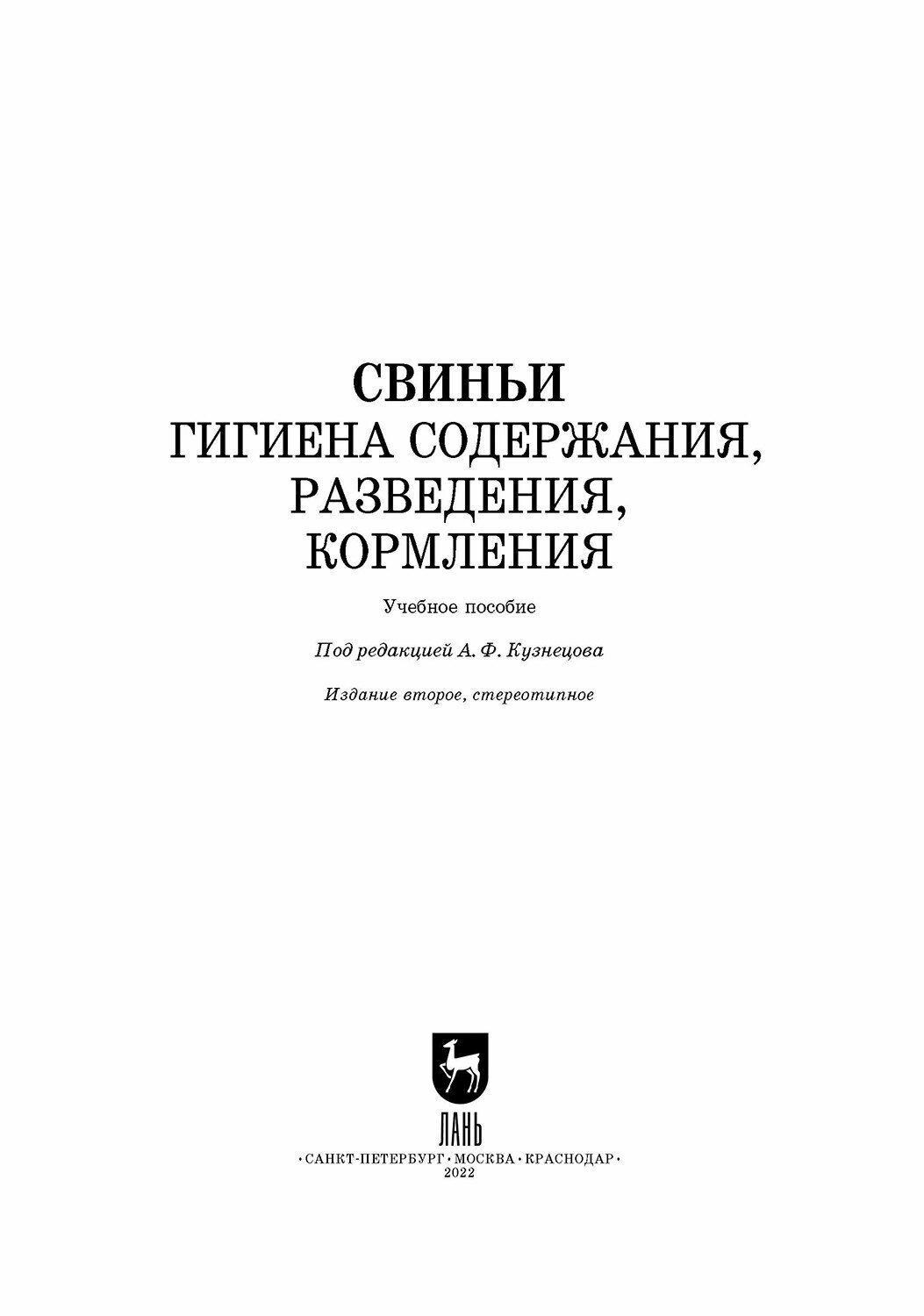 Свиньи. Гигиена содержания разведения кормления (Коллектив авторов); Издательство ЛАНЬ, 2022
