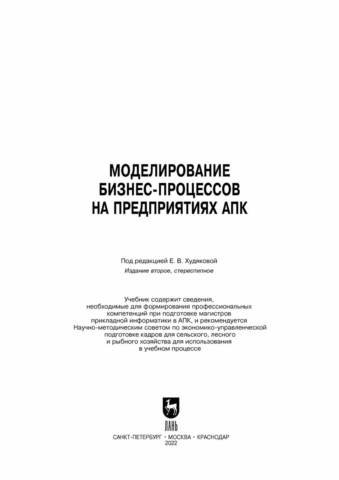 Моделирование бизнес-процессов на предприятиях АПК (Е. В. Худякова); Издательство ЛАНЬ, 2022