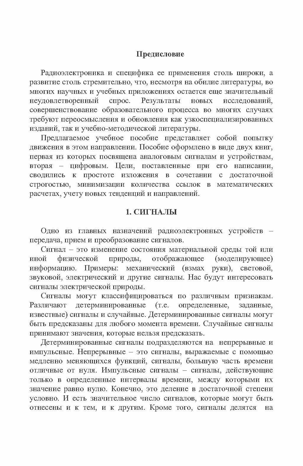 Изложены элементы теории сигналов, электрических цепей, усилителей переменного и постоянного токов, резонансных усилителей малой и большой мощностей, генераторов синусоидальных колебаний, амплитудных частотных и фазовых модуляторов, преобразователей частоты, детекторов модулированных сигналов, генераторов и формирователей импульсных сигналов, источников питания. Пособие предназначено для студентов высших учебных заведений (бакалавриата и магистратуры), обучающихся по направлению «Электроника и наноэлектроника». Оно может быть полезно студентам других направлений электроники, а также студентам, специализирующимся в различных областях радиотехники и информатики.