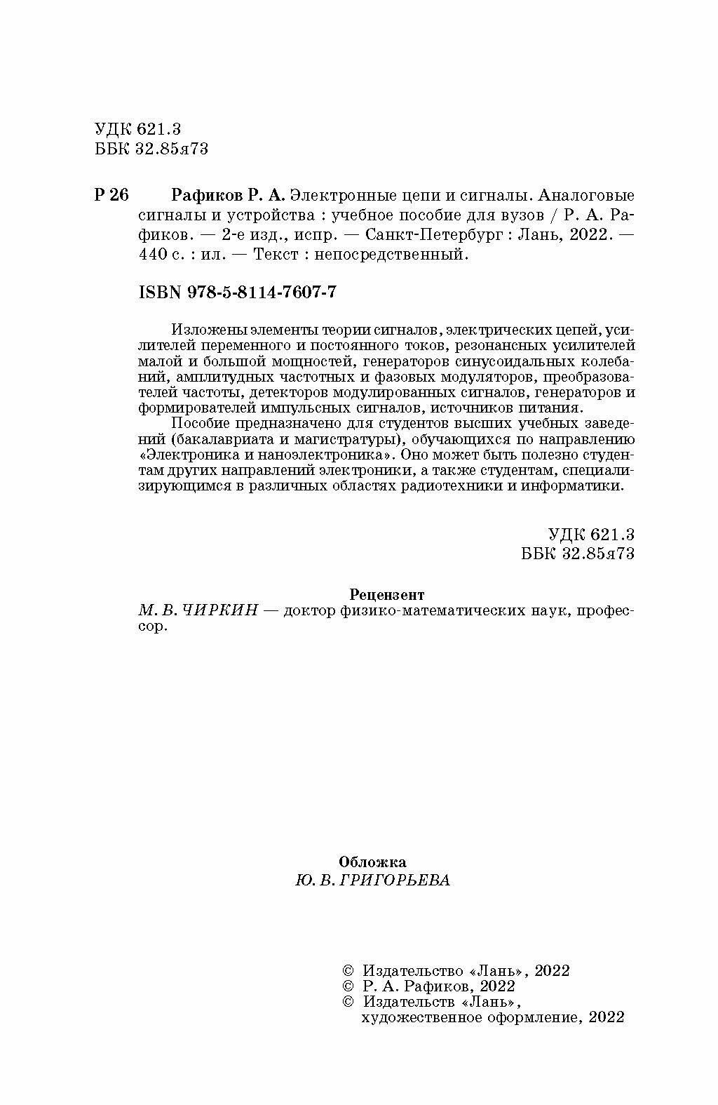 Электронные цепи и сигналы. Аналоговые сигналы и устройства (Р. А. Рафиков); Издательство ЛАНЬ, 2022