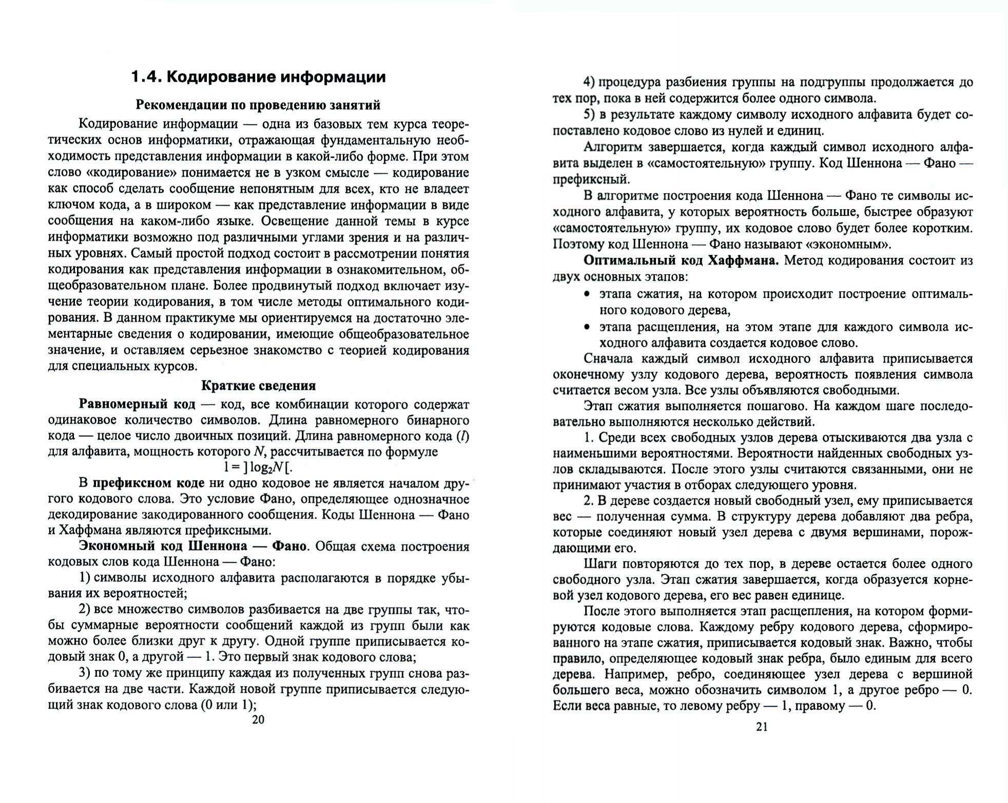 Особенность настоящего практикума заключается в том, что он обеспечивает поддержку изучения курса информатики, охватывающего как ее теоретические, так и прикладные аспекты на уровне, достаточном для подготовки специалистов по непрофильным по отношению к информатике направлениям и специальностям. Учебные курсы, при изучении которых может быть использована данная книга, в образовательных программах называются «Информатика», «Информатика и информационные технологии», «Информационные технологии» и т. п. В практикум вошли разделы «Теоретические основы информатики», «Архитектура вычислительных систем», «Программное обеспечение компьютера», «Информационные модели и системы», «Сеть Интернет и сетевые технологии», «Алгоритмизация и программирование», «Компьютерное моделирование», «Защита информации. Социальные, правовые и этические аспекты информатизации». Пособие предназначено для практического освоения курса информатики в рамках семинарских и практических (лабораторных) работ. Оно содержит в основном практикоориентированные сведения, информационно справочные материалы, задания для аудиторной и самостоятельной работы. Соответствует современным требованиям Федерального государственного образовательного стандарта среднего профессионального образования и профессиональным квалификационным требованиям. Практикум адресован студентам, обучающимся в колледжах по образовательным программам среднего профессионального образования.