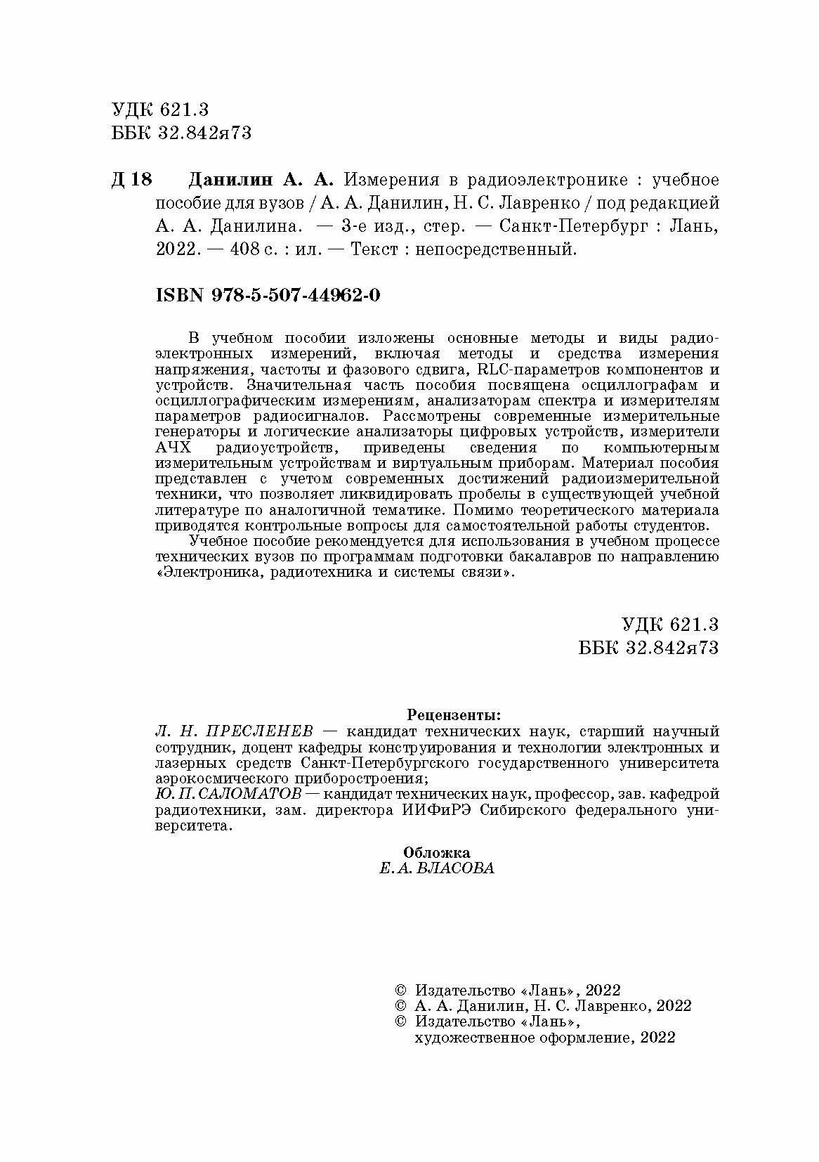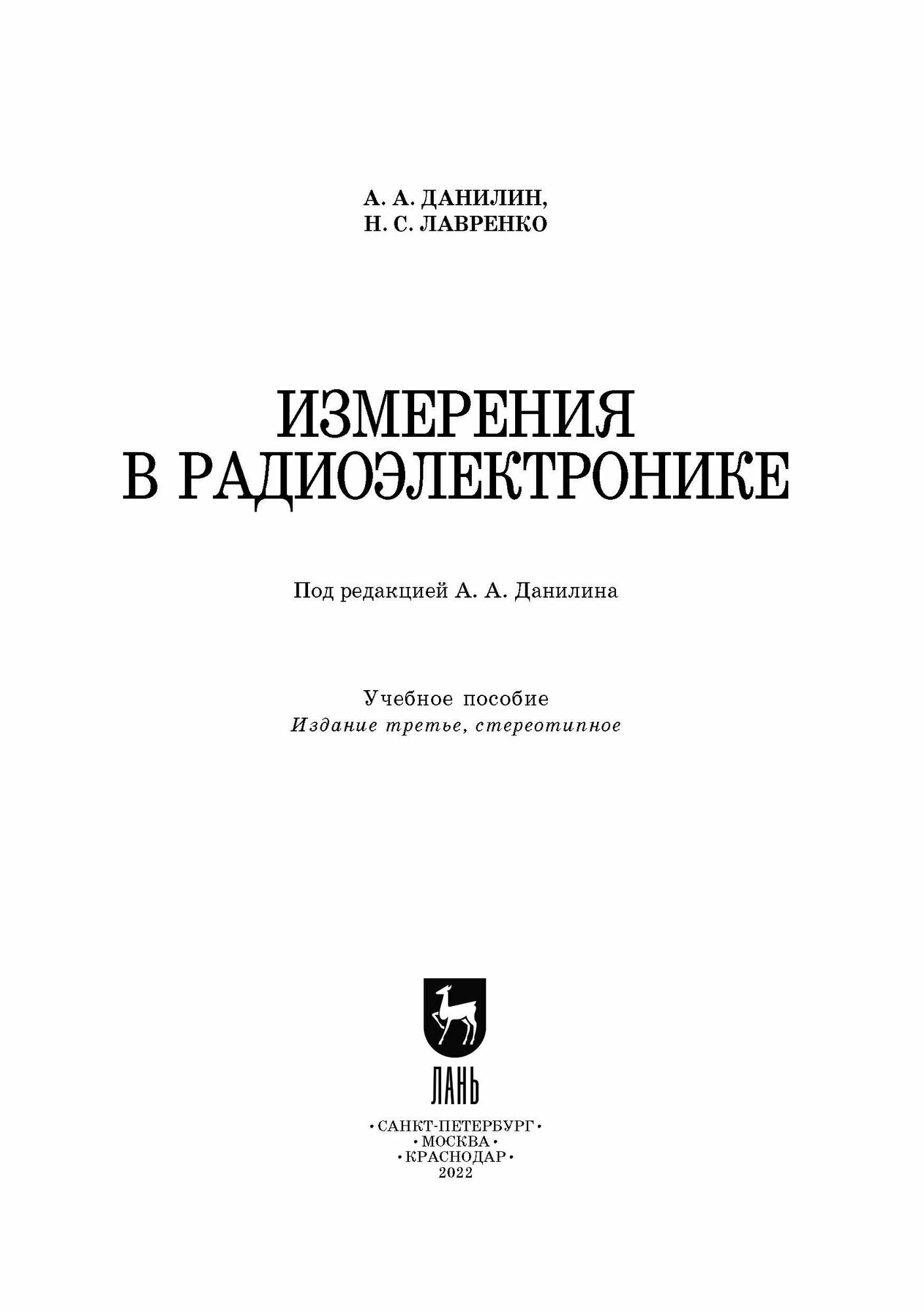 Измерения в радиоэлектронике. Учебное пособие для вузов (Данилин Александр Алексеевич, Лавренко Надежда Сергеевна); Лань, 2022