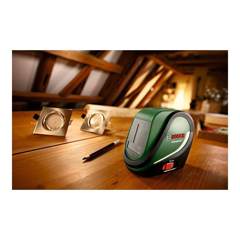 С помощью линейного лазерного нивелира Bosch UniversalLevel 2 можно быстро и точно сделать разметку на стене, потолке или полу под плитку, обои, ниши, потолки, различные элементы декора. Он проецирует на поверхность хорошо различимый лазерный крест, а угол раскрытия 120° по вертикали и горизонтали обеспечивает длинные линии даже при использовании на небольшом расстоянии от поверхности. Функция автовыравнивания помогает точно позиционировать прибор для начала работы всего за 4 секунды.