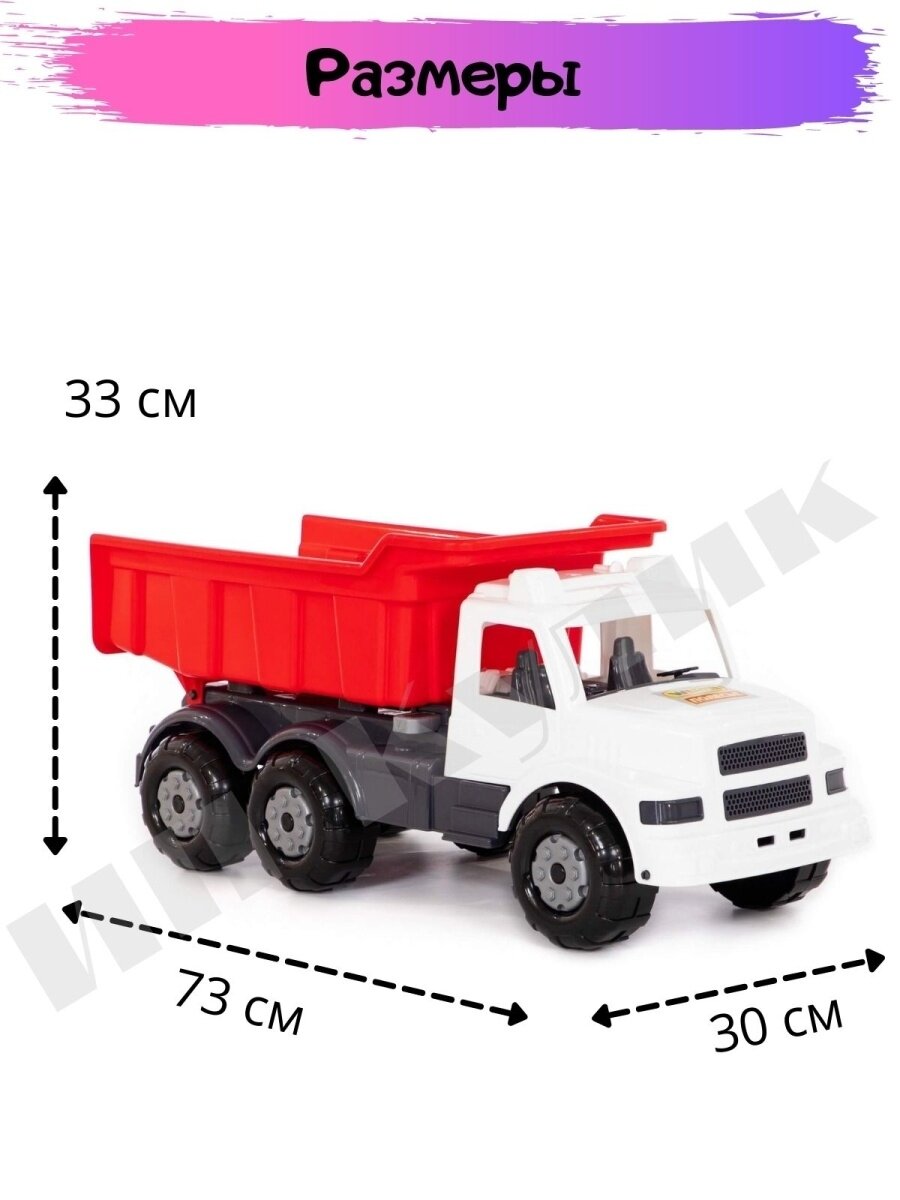 Игрушечный самосвал Буран №3 выполнен в красно-белых цветах. Машинка самосвал игрушка сделана из пластмассы. Самосвал игрушка с поднимающимся и опускающимся кузовом. Играть с самосвалом можно как дома, так и на улице. Размер игрушки: 73 х 29,5 х 32,5 см.