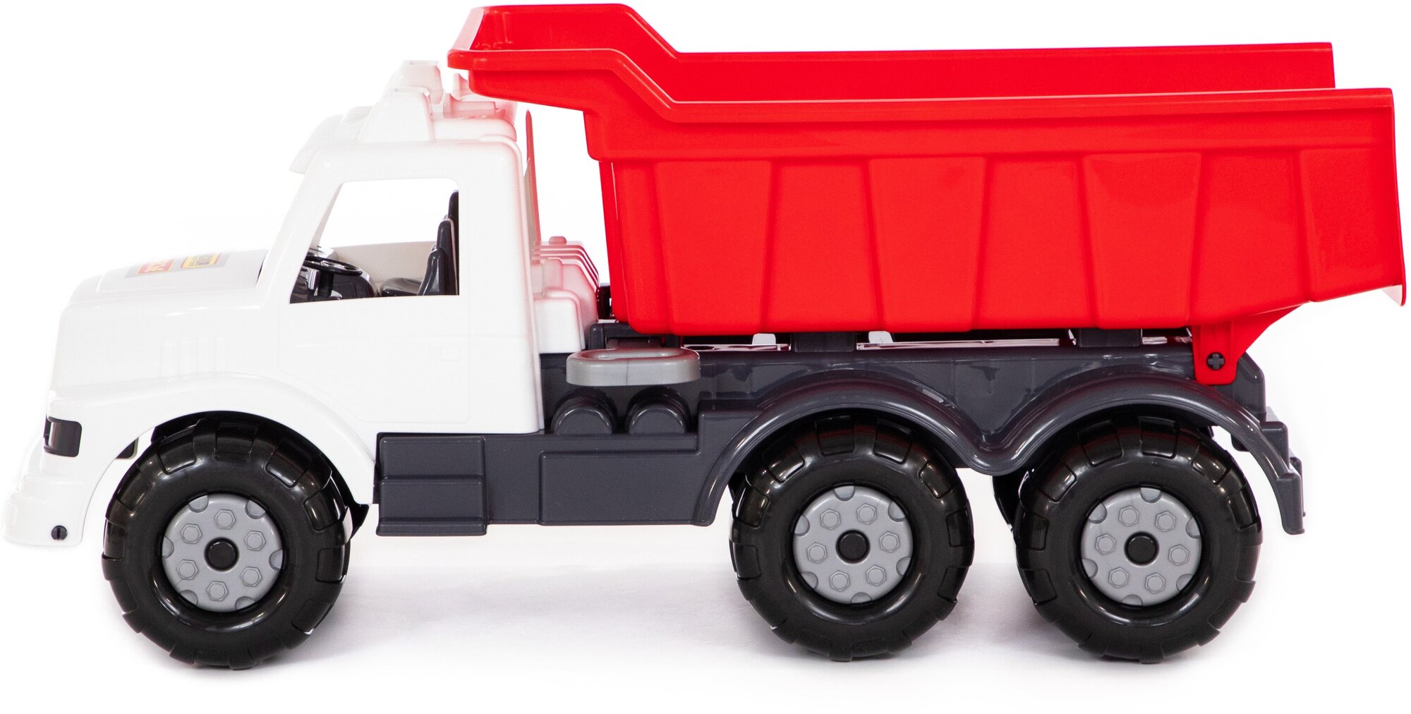 Автомобиль торговой марки "Полесье" представляет собой уменьшенную модель настоящей грузовой техники - самосвала. Игрушка выполнена из яркого высококачественного пластика и отлично подойдет для разнообразных сюжетных игр.