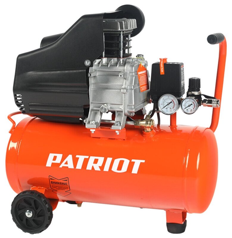 PATRIOT подходит для работы с пневматическими инструментами. Данная модель способна выполнять задачи различного плана - строительство, ремонт или покраска. Двигатель электрический, мощностью 1.5 кВт. Компрессор имеет максимальное рабочее давление 8 бар. Два манометра, расположенные на корпусе аппарата, показывают давление внутри ресивера и на выходе из компрессора. В комплект входит пульверизатор, распылитель краски, пистолет для продувки и накачки шин.