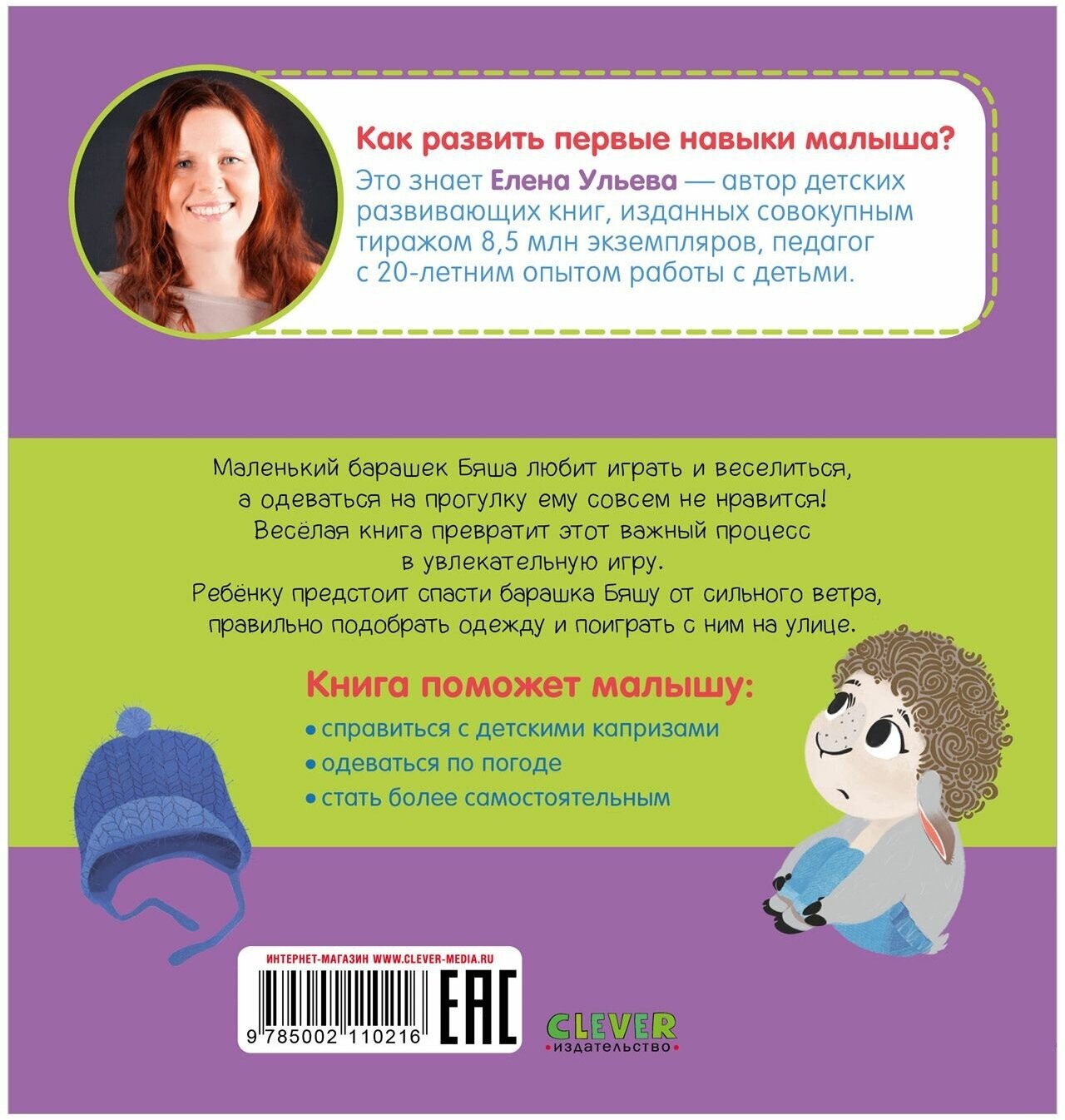 Маленький барашек Бяша любит играть и веселиться, а одеваться на прогулку ему совсем не нравится! Веселая книга превратит этот важный процесс в увлекательную игру. Ребенку предстоит спасти барашка Бяшу от сильного ветра, правильно подобрать одежду и поиграть с ним на улице. Книга поможет малышу: - справиться с детскими капризами, - одеваться по погоде, - стать более самостоятельным. Ранее книга Е. Ульевой выходила в издательстве CLEVER под названием «Барашек Бяша одевается сам»