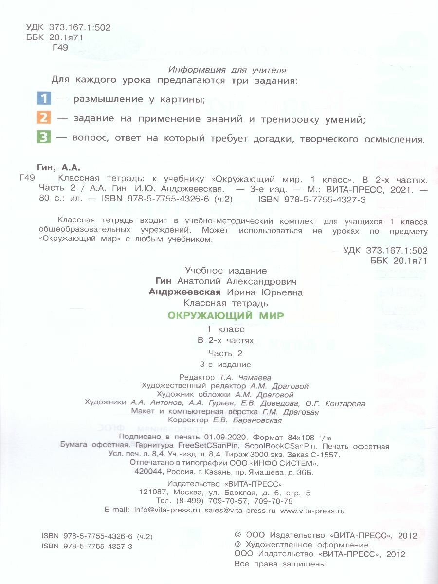 Классная тетрадь к учебнику «Окружающий мир. 1 класс». Часть 2 (А. А. Гин); ВИТА-ПРЕСС, 2021