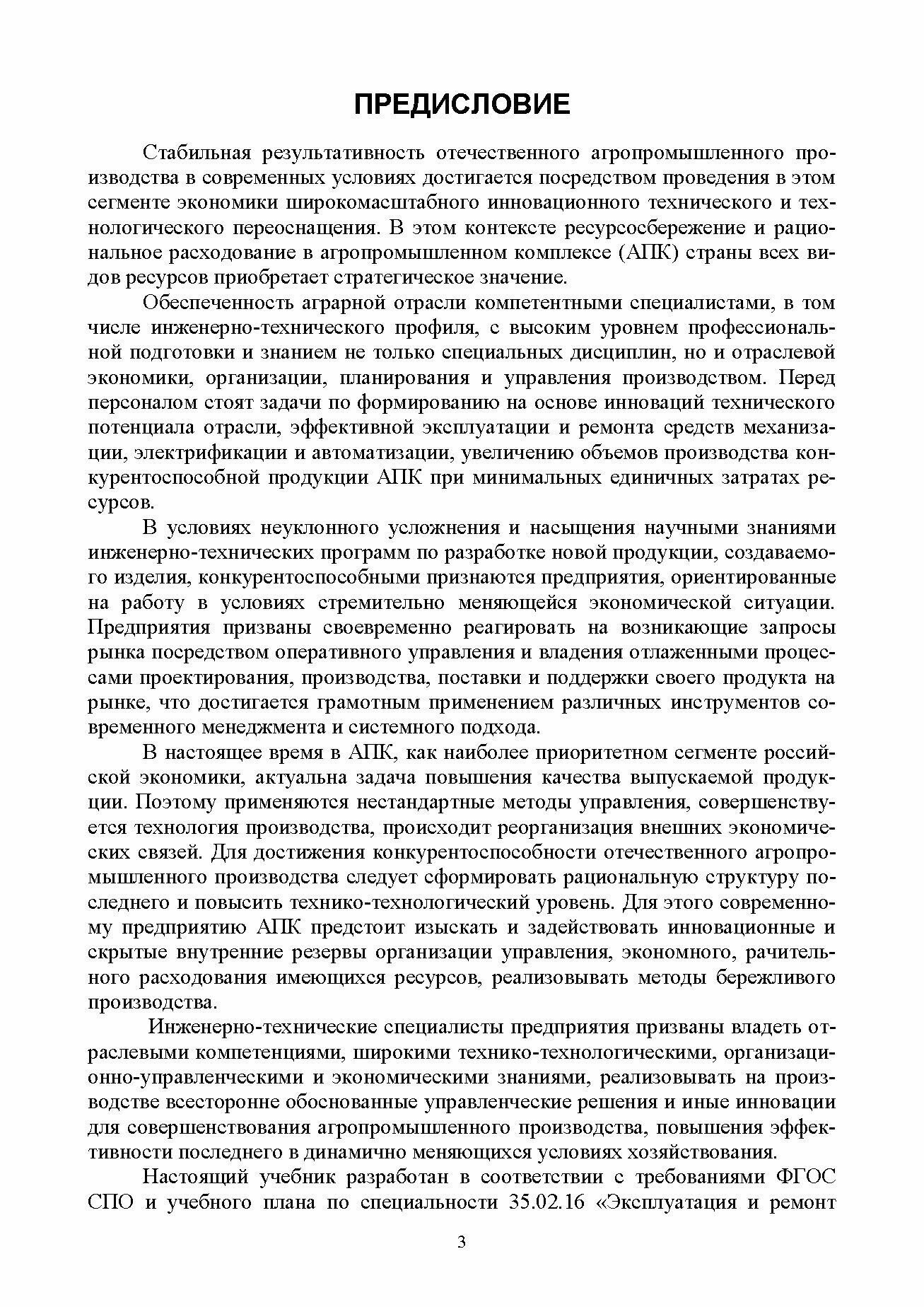 Учебник подготовлен в соответствии с требованиями ФГОС СПО и Учебным планом по специальности «Эксплуатация и ремонт сельскохозяйственной техники». Учебный материал призван формировать у студентов компетенции в соответствии с профессиональным стандартом «Специалист в области механизации сельского хозяйства». Рассмотрены отраслевые особенности АПК, освещены основы производственных и технологических процессов в сельском хозяйстве, аспекты технического сервиса в АПК, уделено внимание принципам, методам и инструментам бережливого производства с учетом цифровизации последнего, вопросам оптимизации и управления материальными потоками в аграрном производстве, основам организации управления агропромышленным производством и персоналом. Учебник адресован студентам колледжей и техникумов по агроинженерным специальностям.