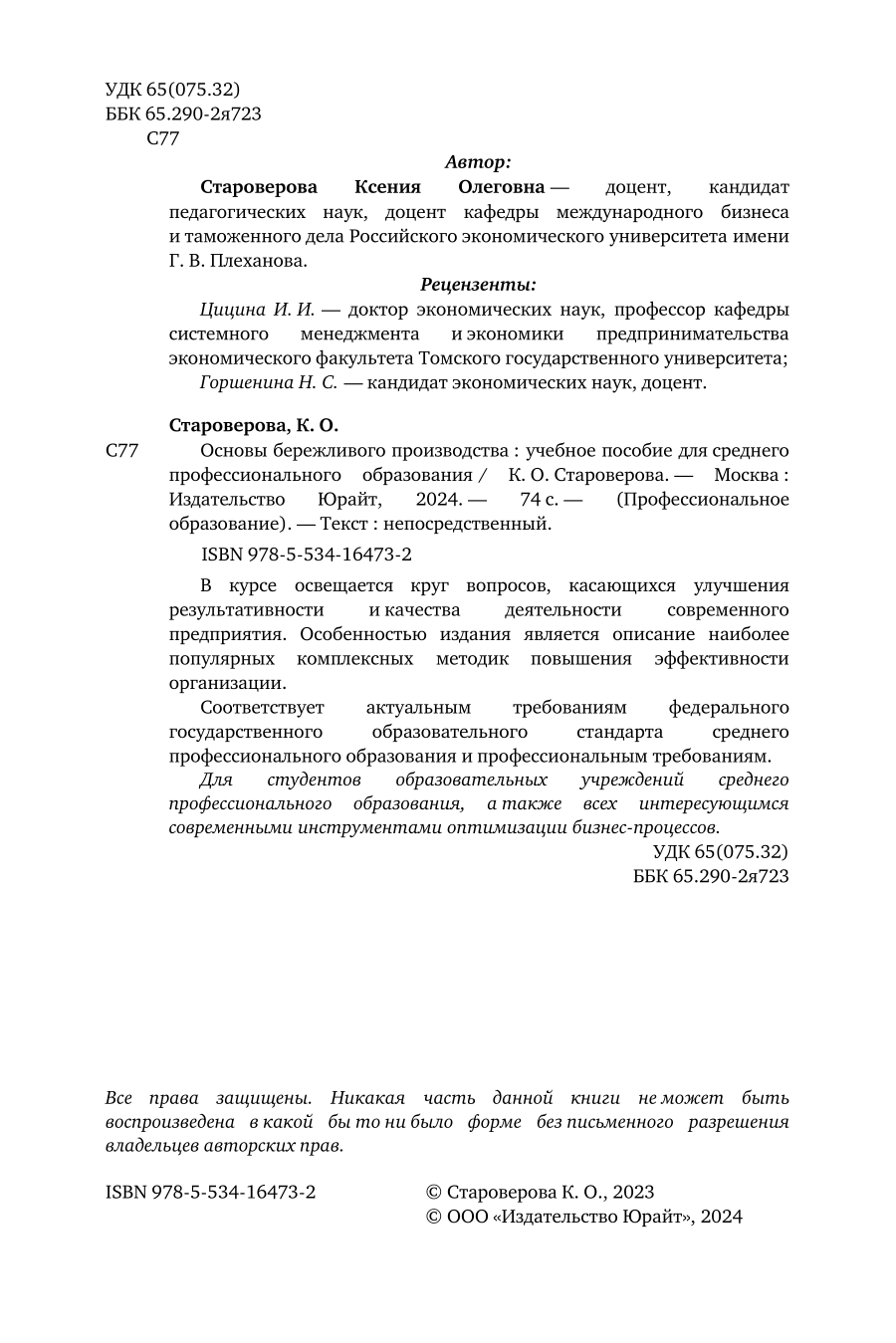 Основы бережливого производства. Учебное пособие для СПО (Ксения Олеговна Староверова); ЮРАЙТ, 2023