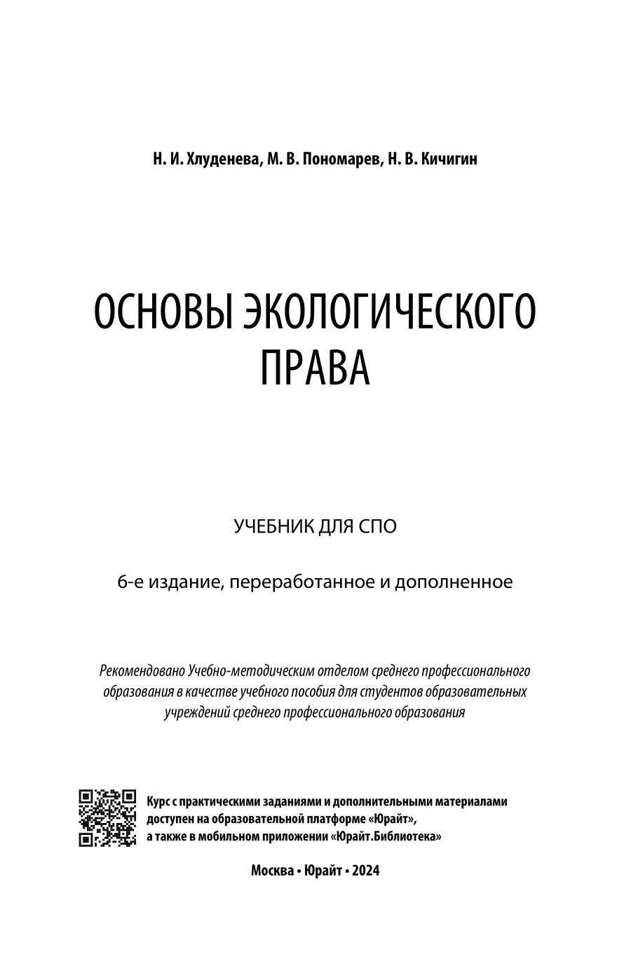 Основы экологического права 6-е изд. пер. и доп. Учебник для СПО (Наталья Игоревна Хлуденева); ЮРАЙТ, 2023