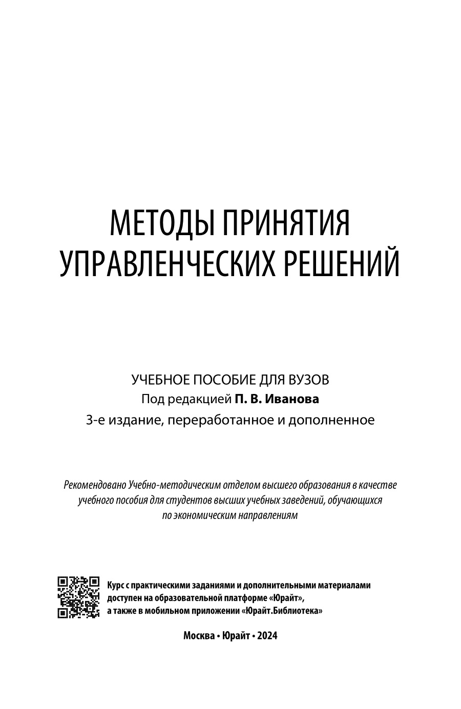 Методы принятия управленческих решений 3-е изд. пер. и доп. Учебное пособие для вузов (Ирина Валентиновна Ткаченко); ЮРАЙТ, 2023