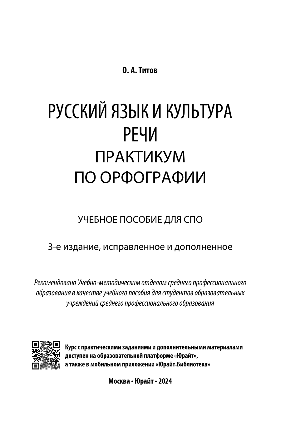 Русский язык и культура речи. Практикум по орфографии 3-е изд. испр. и доп. Учебное пособие для СПО (Олег Анатольевич Титов); ЮРАЙТ, 2023