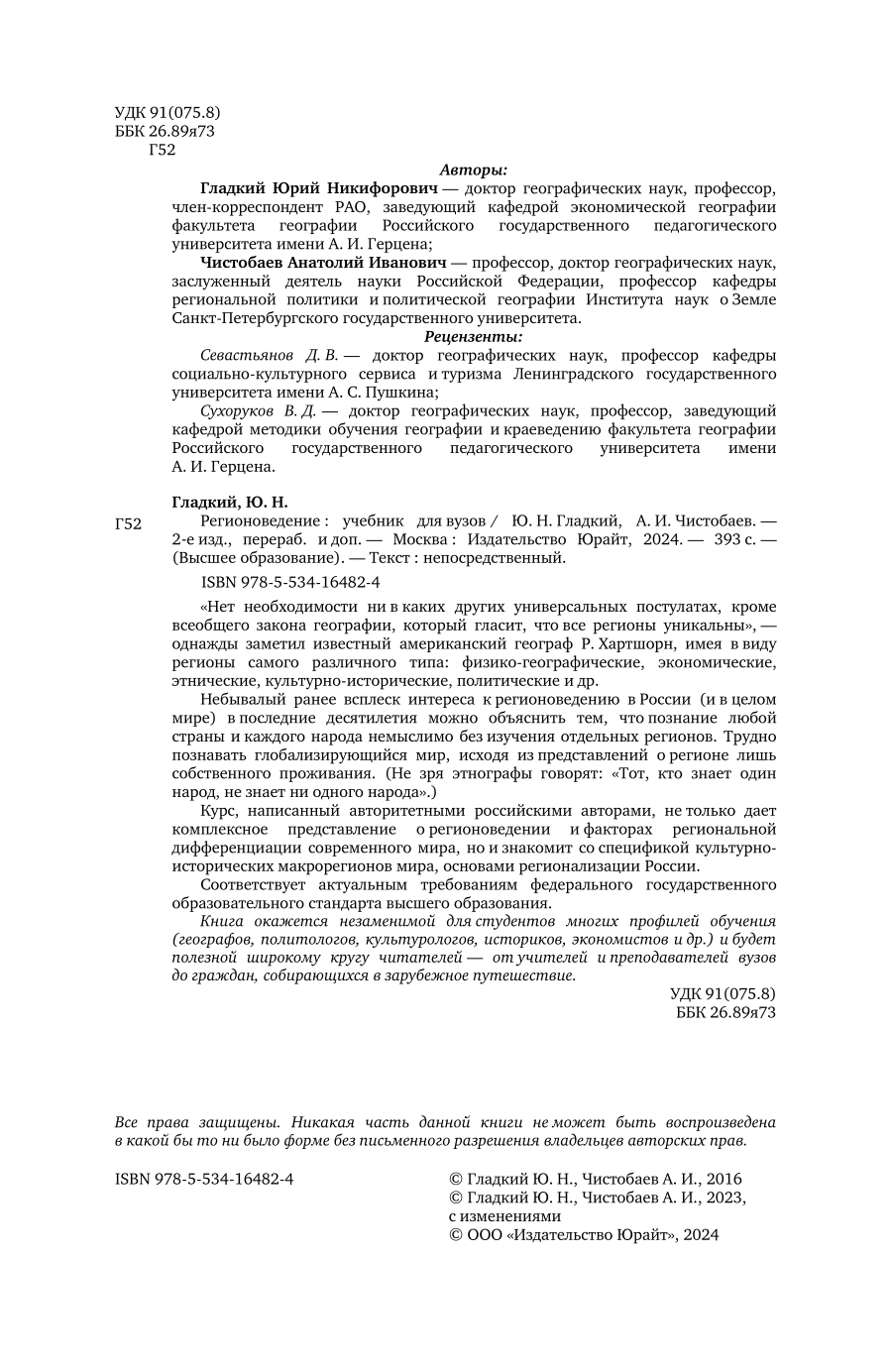 Регионоведение 2-е изд. пер. и доп. Учебник для вузов (Анатолий Иванович Чистобаев); ЮРАЙТ, 2023