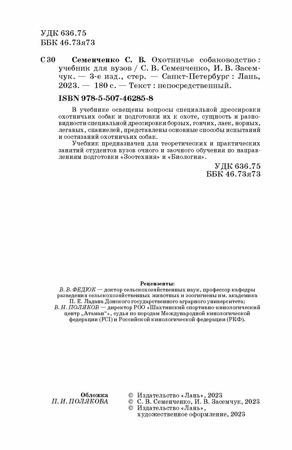Охотничье собаководство. Учебник для вузов (С. В. Семенченко); Издательство ЛАНЬ, 2023