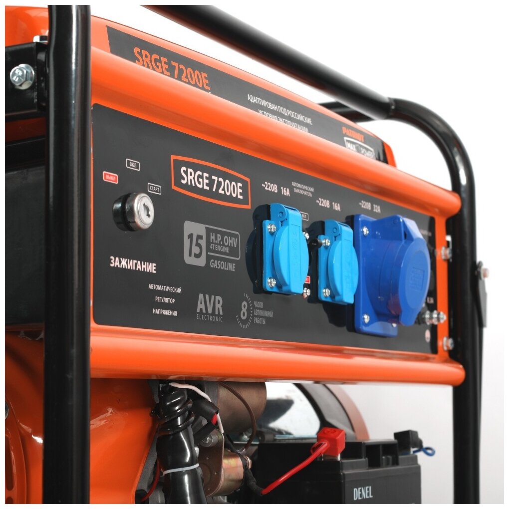 Двигатель: 4т, OHV, АИ-92, 420 сс, 14 л.с; Напряжение: 1ф, 220В, 50Гц, AVR; Мощность ном/макс: 6.0/6.5 кВт; Объём топливного бака: 25 л; Расход топлива: 490г/кВт ч; Уровень шума (7м): 78 dB; Стартер: ручной/электро +АКБ; Вольтметр: стрелочный; Розетки: 2 евро 16А,1 евро 32А; Выход на 12V: +; Комплект для зарядки АКБ: +; Защита по уровню масла: +; Защита от перегрузки: +; Защита от короткого замыкания: +; Комплект для транспортировки: +; Вес: 86 кг;