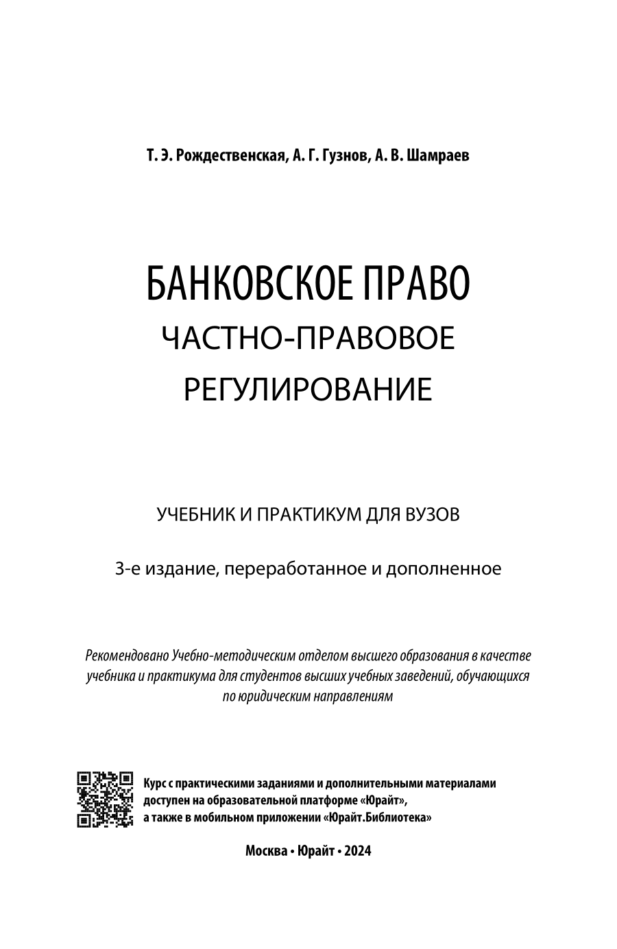 Банковское право. Частно-правовое регулирование 3-е изд. пер. и доп. Учебник и практикум для вузов (Рождественская Татьяна Эдуардовна, Гузнов Алексей Геннадьевич, Шамраев Андрей Васильевич), 2023