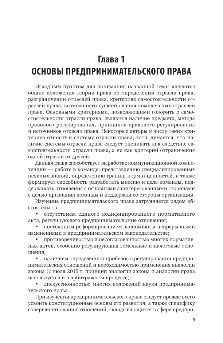 В учебнике отражены юридические основы предпринимательского права в Российской Федерации. Книга подробно, с приведением практических примеров и схем освещает следующие вопросы: российская правовая система, субъекты права, контрактное право, внедоговорные обязательства, право собственности, корпоративное право, трудовое право, вопросы борьбы с отмыванием незаконных доходов и коррупцией, а также вопросы корпоративного управления, основанные на принятом в 2014 г. Кодексе корпоративного управления. Содержание учебника соответствует актуальным требованиям федерального государственного образовательного стандарта высшего образования. Книга адресована студентам вузов, обучающимся по юридическим и экономическим направлениям, российским и иностранным юристам, руководителям организаций, финансовым директорам, главным бухгалтерам, аудиторам, а также всем лицам, интересующимся предпринимательским правом Российской Федерации. Книга также подходит для слушателей по программе MBA.