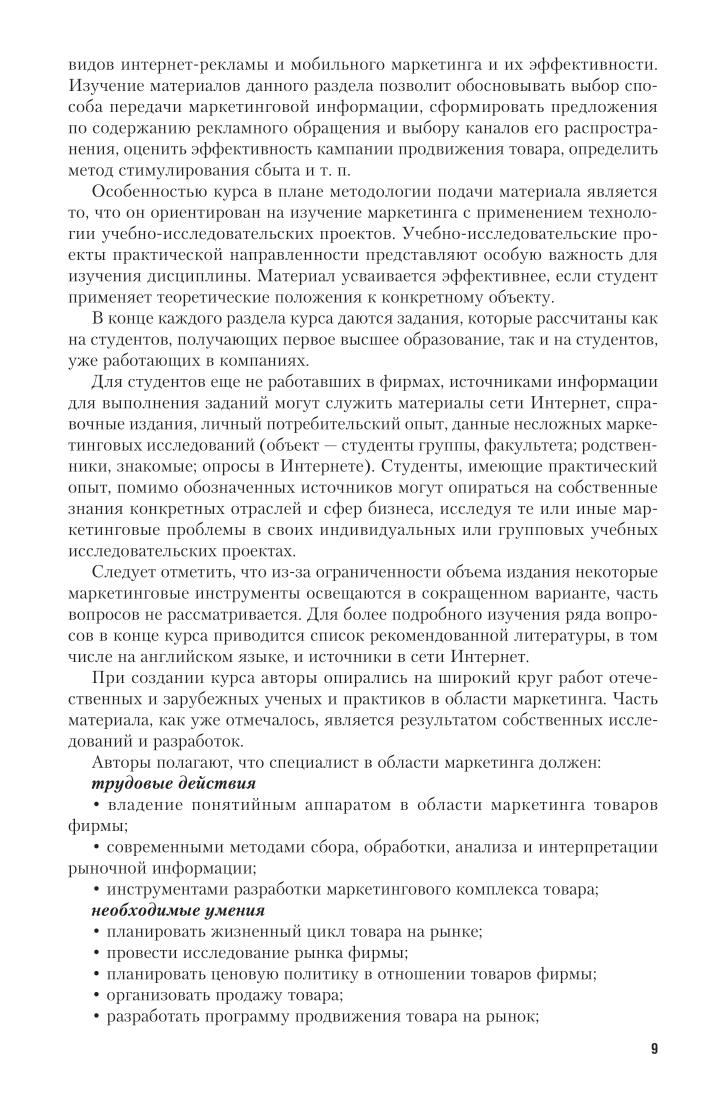 В курсе подробно рассматриваются теоретические и практические вопросы маркетинга, его современное понимание и особенности применения, методы анализа внешней среды предприятия, оценки привлекательности рынков, конкурентоспособности товаров и фирмы, эффективности различных маркетинговых мероприятий. Издание содержит большое количество интересных примеров, иллюстрирующих реальную деятельность различных предприятий и организаций. Теоретическая часть дополнена обширным практикумом по каждому разделу, содержащим разнообразные задания - контрольные вопросы, ситуационные задания, кейсы, что позволит студентам самостоятельно проверить и закрепить полученные знания и навыки. Соответствует актуальным требованиям федерального государственного образовательного стандарта среднего профессионального образования и профессиональным требованиям. Для студентов образовательных учреждений среднего профессионального образования, а также слушателей системы повышения квалификации.