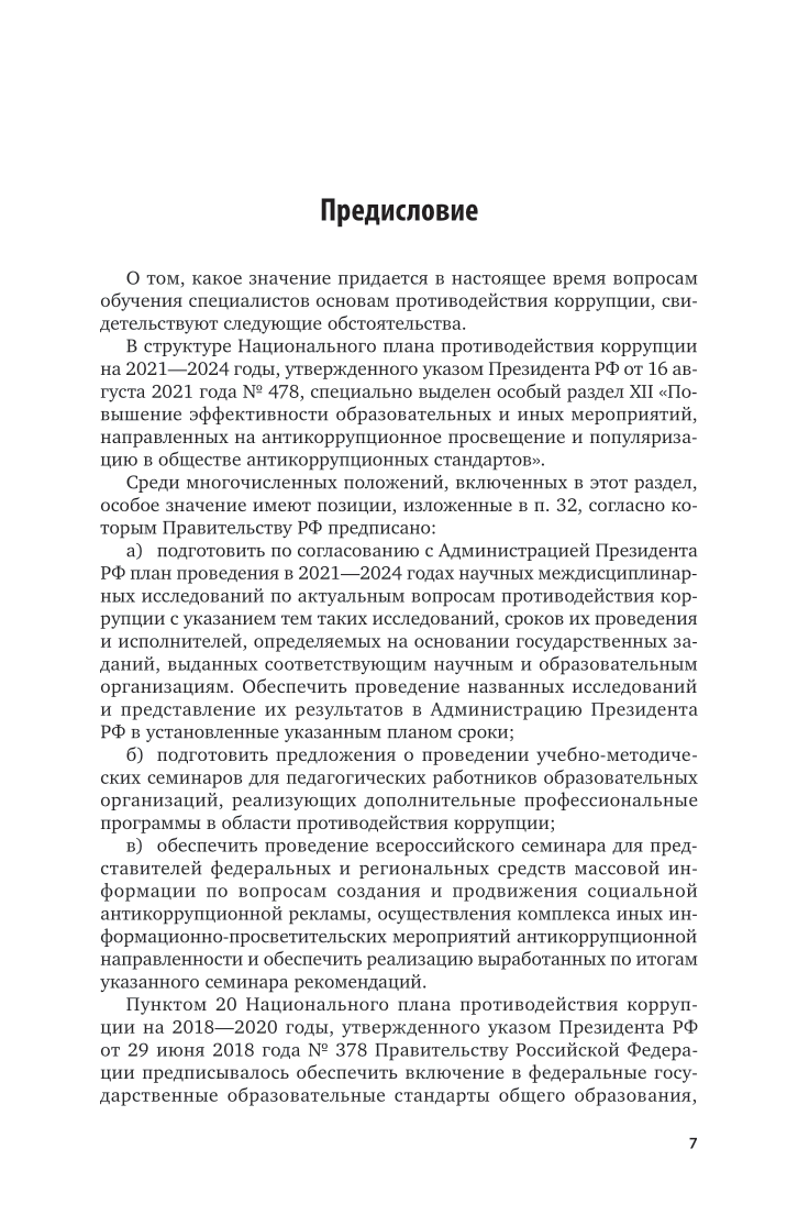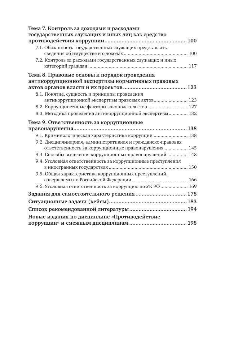 Курс содержит систематизированный дидактический материал по темам, имеющим особое значение для формирования у обучающихся компетенций, позволяющих с пониманием сущности, правовых и организационных основ противодействия коррупции принимать осознанные решения и осуществлять основанные на законе действия, самостоятельно осуществлять поиск, отбор и научный анализ нормативных правовых актов и литературы для исполнения обязанностей по предстоящему должностному предназначению, обеспечивая тем самым формирование как общекультурной, так и профессиональной компетенций антикоррупционной направленности специалистов. В издании рассмотрены такие темы, как: исторические аспекты зарождения коррупции, меры по противодействию коррупции, ответственность за коррупционные правонарушения и другие. В конце каждой темы для закрепления учебного материала предложен перечень заданий, исполнение и правильное оформление которых поможет лучше усвоить необходимые знания и компетенции. Соответствует актуальным требованиям федерального государственного образовательного стандарта среднего профессионального образования и профессиональным требованиям. Для студентов образовательных учреждений среднего профессионального образования и преподавателей.