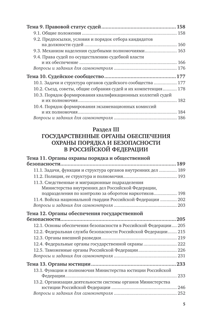 Учебник написан в сжатой, компактной и доступной форме на основе Конституции РФ, федеральных конституционных законов о судах, других законодательных и нормативных актов. В нем учтены последние изменения законодательства о судоустройстве, правоохранительных органах, адвокатской деятельности и др. После глав даны вопросы и задания для самоконтроля, в конце учебника приведен словарь терминов.
