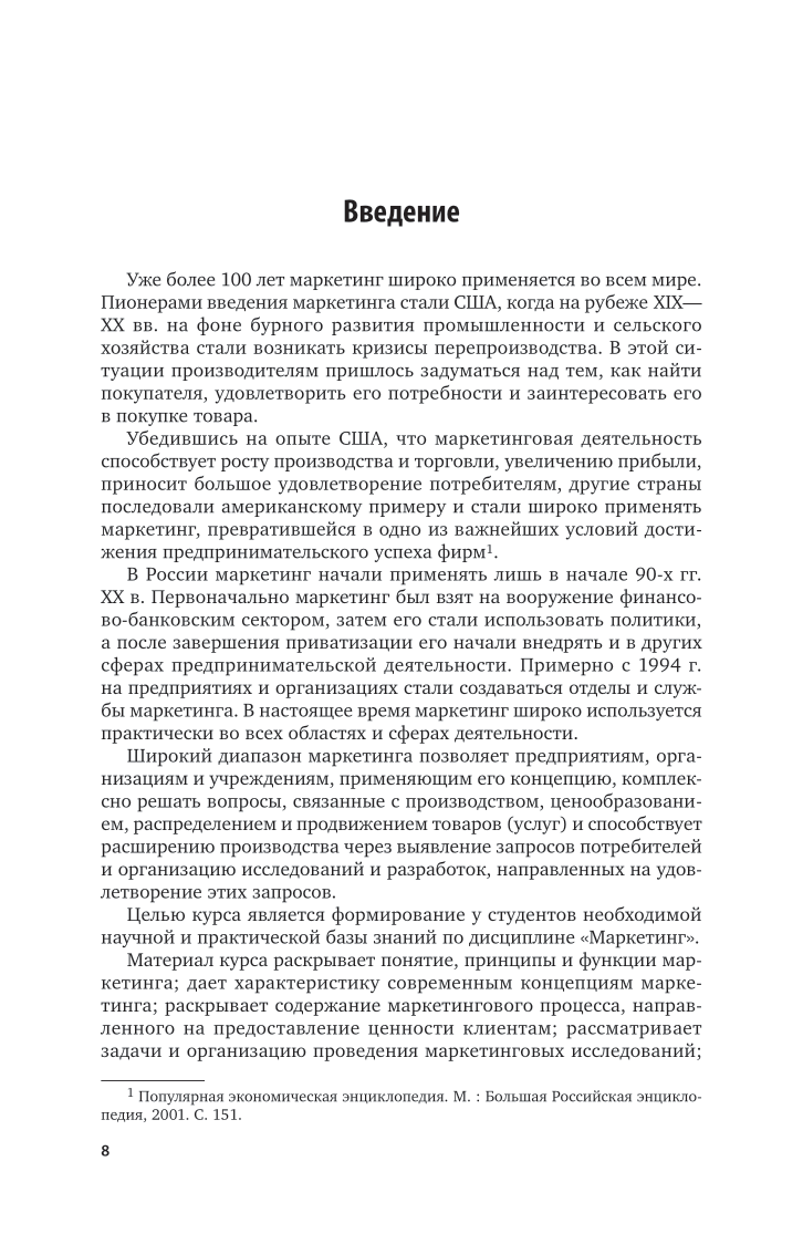 Курс раскрывает основные понятия и принципы маркетинга, его различные современные концепции. Рассмотрены содержание маркетингового процесса, методы и задачи проведения маркетинговых исследований, а также многие другие вопросы. Курс содержит большое количество интересных практических примеров, иллюстрирующих реальную деятельность различных предприятий и организаций. Теоретическая часть дополнена обширным практикумом, что позволит студентам самостоятельно проверить и закрепить полученные знания и навыки. Соответствует актуальным требованиям федерального государственного образовательного стандарта среднего профессионального образования и профессиональным требованиям. Для студентов образовательных учреждений среднего профессионального образования, а также практических работников в сфере маркетинга и рекламы.