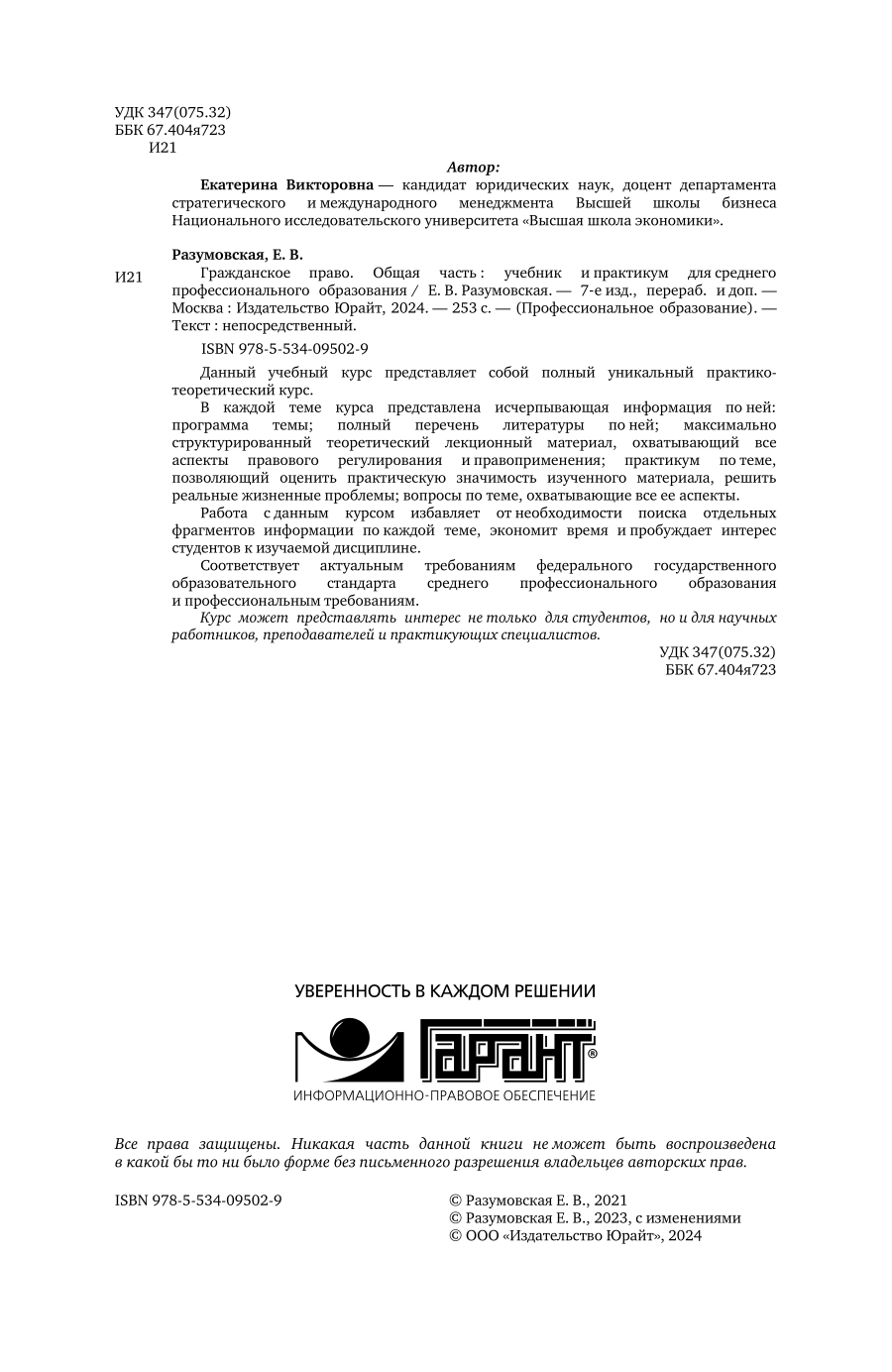 На сегодняшний день товар «Книга: Гражданское право. Общая часть 7-е изд. пер. и доп. Учебник и практикум для СПО (Екатерина Викторовна Иванова); ЮРАЙТ, 2023» можно купить с кешбеком в 1 магазине: ЛитРес