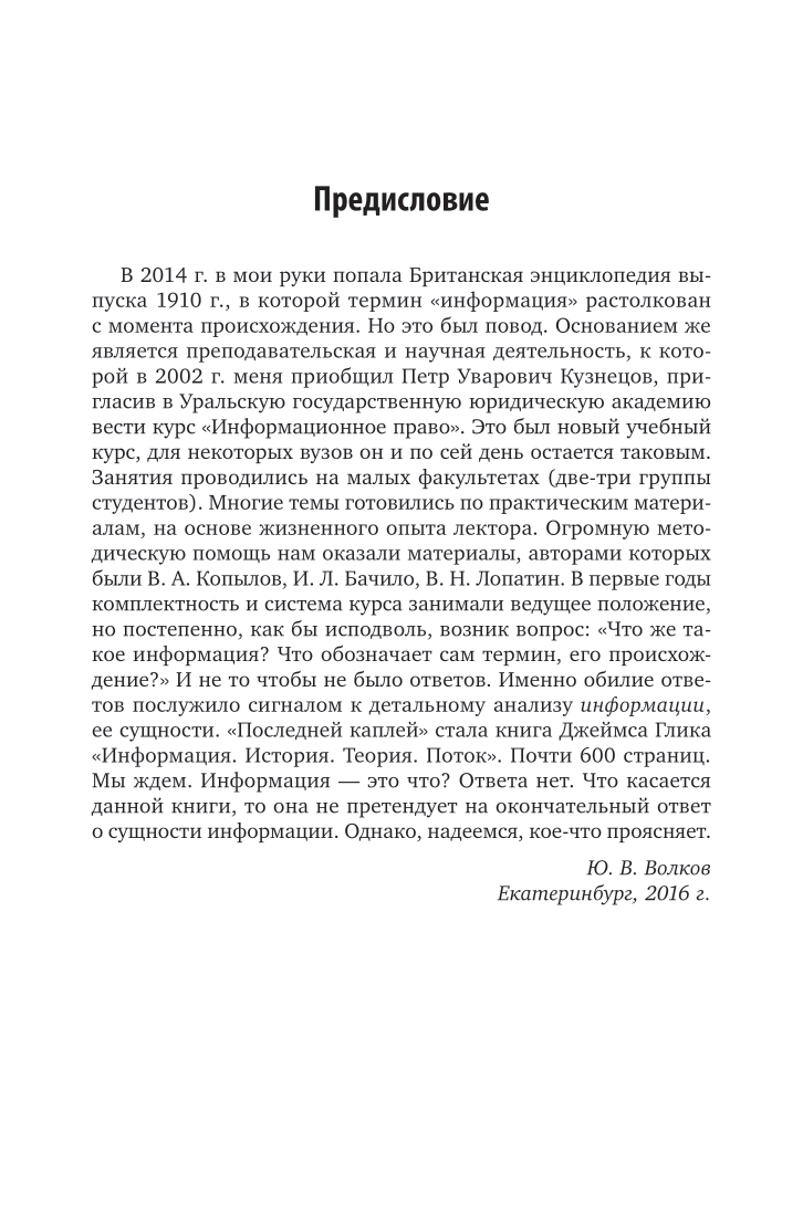 Издание содержит краткое описание процесса и основных (но далеко не всех) результатов исследования по проблеме происхождения термина «информация», его основных понятий, а также результаты анализа по вопросу о возможности признания информации общенаучной или отраслевой категорией. Некоторые результаты впервые представлены на русском языке и существенно дополняют сложившиеся представления об информации. Для преподавателей, аспирантов, студентов, а также широкого круга читателей, которые интересуются вопросами информационного права и теории права.