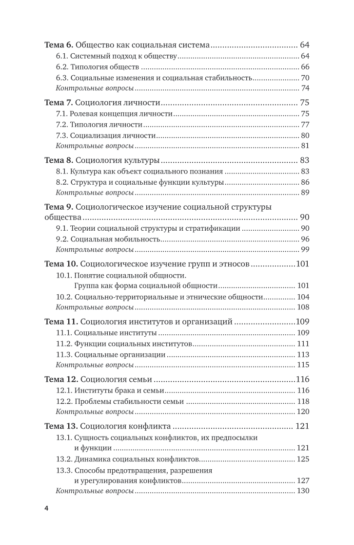 В предлагаемом издании обобщен и систематизирован теоретический материал по основным темам курса социологии, содержащийся в отечественных и зарубежных публикациях. В нем в доступной форме излагаются основные положения социологии как науки об обществе. Контрольные вопросы позволяют проверить уровень знаний студентов. Курс предназначен в том числе для самостоятельной подготовки к зачетам и экзаменам студентов очно-заочной и заочной форм обучения. Соответствует актуальным требованиям федерального государственного образовательного стандарта высшего образования. Для студентов высших учебных заведений, обучающихся по всем направлениям.