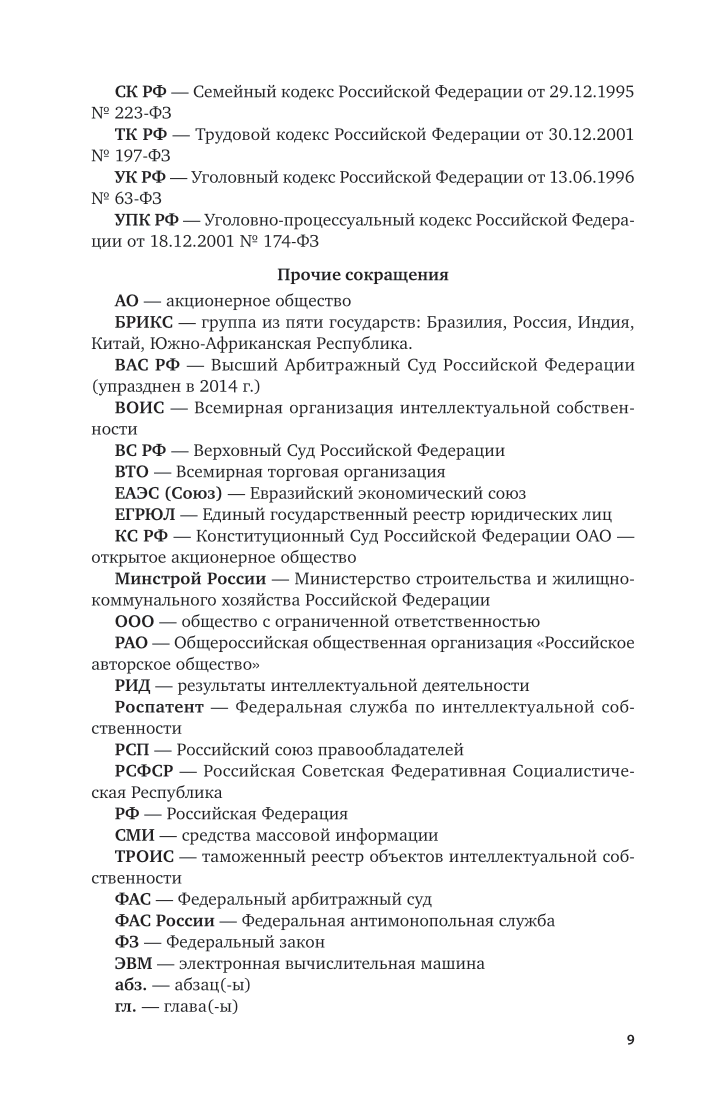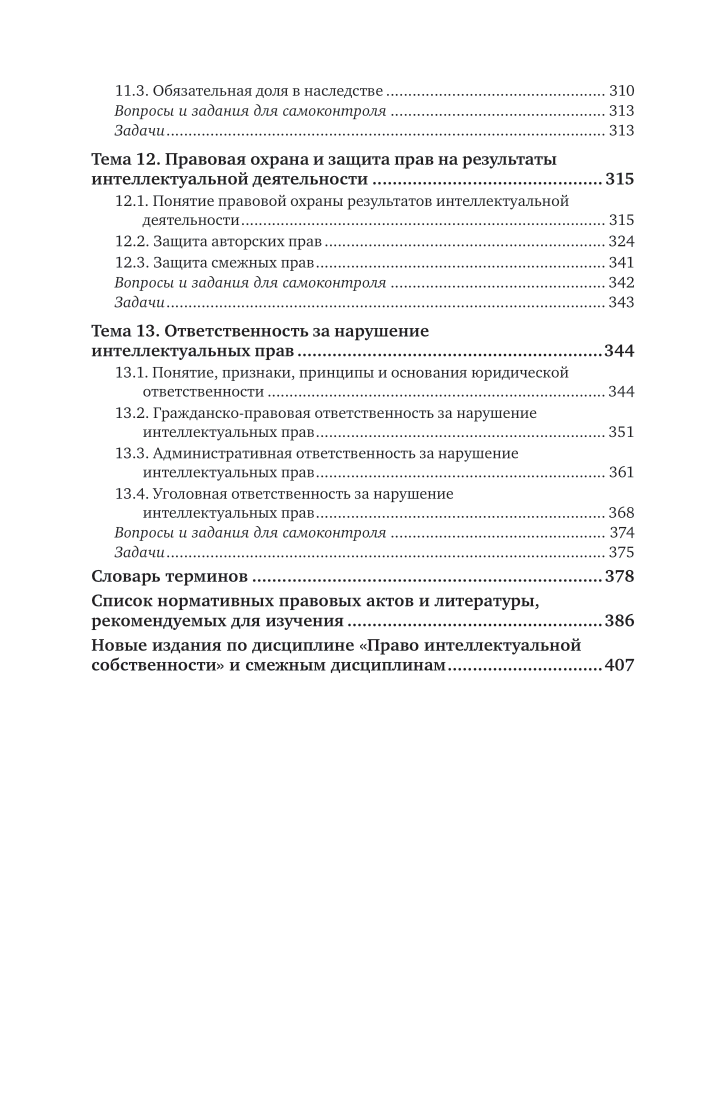 В курсе рассматриваются общее понятие интеллектуальной собственности, авторское право и его источники, объекты авторских и смежных прав, права авторов и иных лиц, смежные права, передача имущественного права, наследование исключительных прав, договоры в праве интеллектуальной собственности. Самостоятельное значение имеют также институты защиты авторских и смежных прав и ответственности за нарушение законодательства об интеллектуальной собственности. Кроме того, отдельные темы посвящены вопросам патентного права и средствам индивидуализации участников гражданского оборота, а также товаров, работ и услуг. Указанные темы рассматриваются на основе норм международных договоров, Гражданского кодекса Российской Федерации и научной разработанности. Материал предложенных тем сопровождается примерами из судебной практики и задачами для более успешного усвоения материала. Соответствует актуальным требованиям федерального государственного образовательного стандарта высшего образования. Для студентов, обучающихся по программам академического бакалавриата, аспирантов и преподавателей высших юридических учебных заведений, школ дизайна, для тех, кто занимается вопросами правового регулирования результатов интеллектуальной деятельности, а также для широкого круга читателей, интересующихся вопросами интеллектуальной собственности.