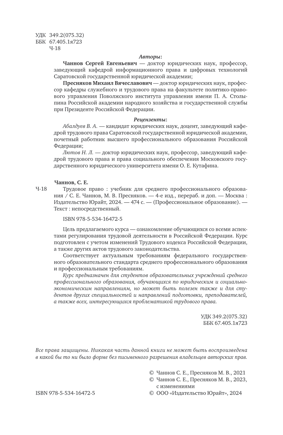 Трудовое право 4-е изд. пер. и доп. Учебник для СПО (Сергей Евгеньевич Чаннов), 2023