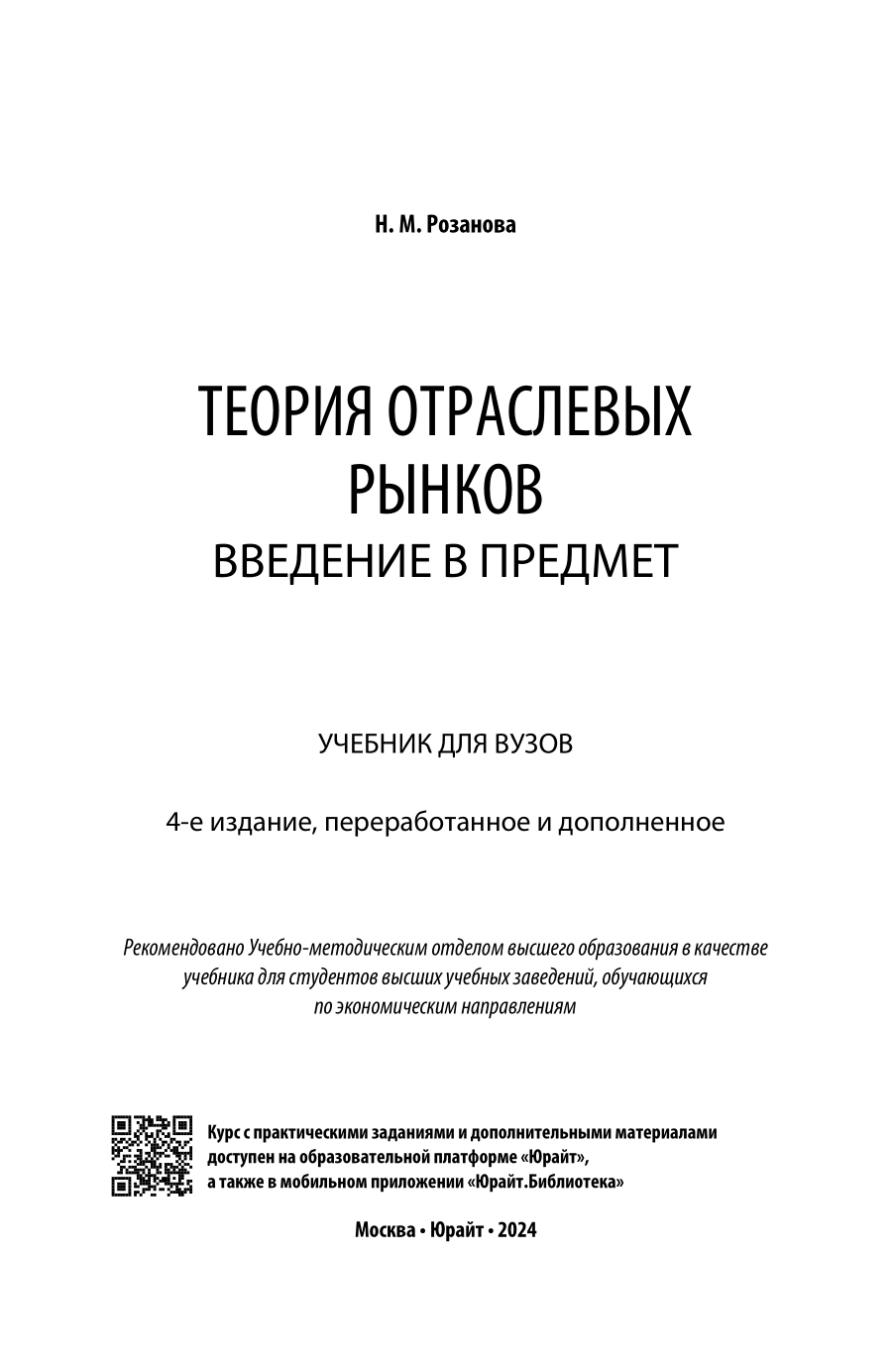 Теория отраслевых рынков: введение в предмет 4-е изд. пер. и доп. Учебник для вузов (Надежда Михайловна Розанова); ЮРАЙТ, 2023