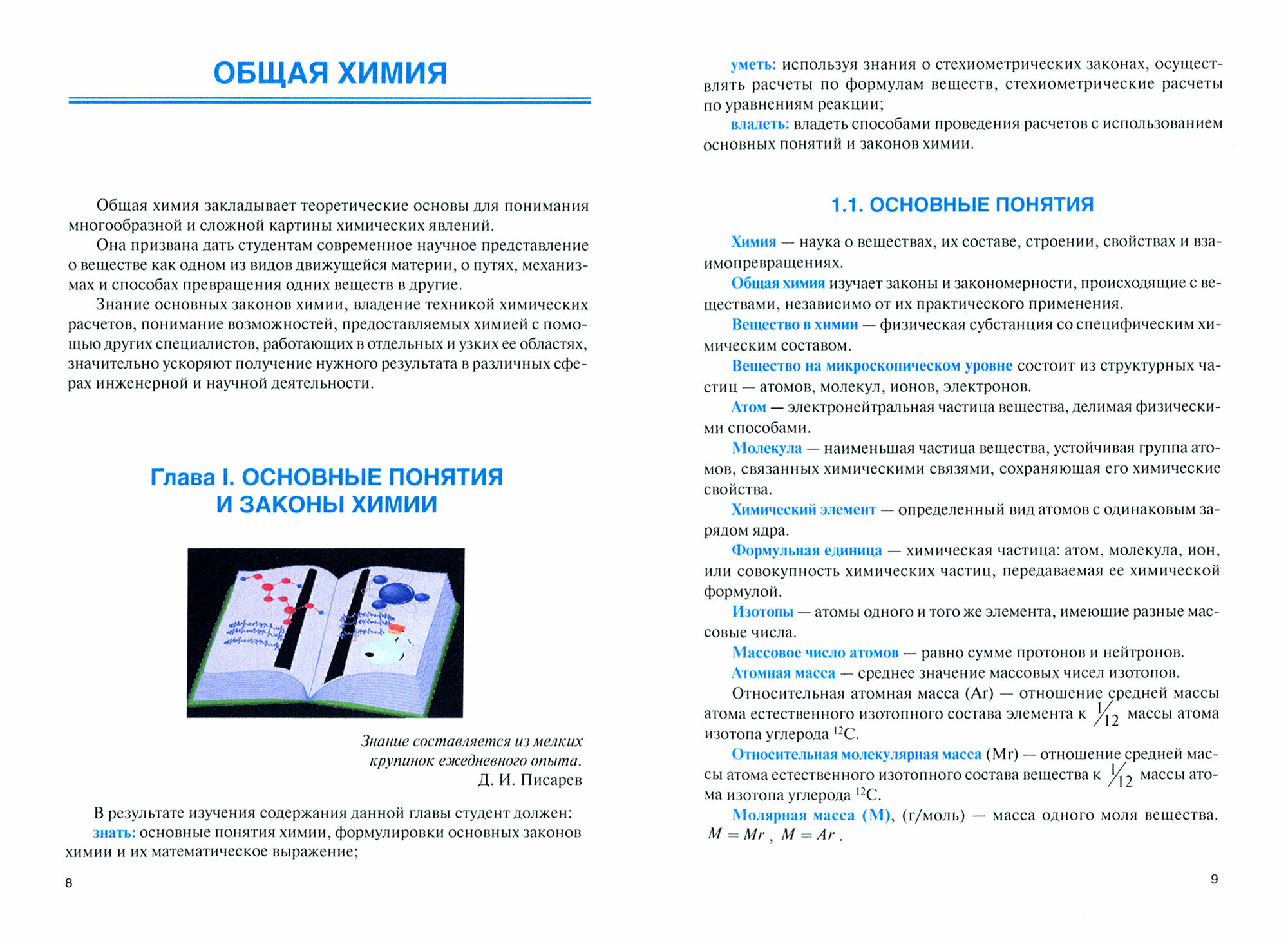 Изложен теоретический материал по всем основным разделам общей химии. Структура изложения материала определена логикой взаимосвязей между важнейшими теоретическими положениями, основными законами и понятиями химии. В конце каждой главы студентам предложены вопросы и задания для самостоятельной работы. Соответствует ФГОС СПО последнего поколения. Для студентов среднего профессионального образования, обучающихся по всем специальностям и профессиям.