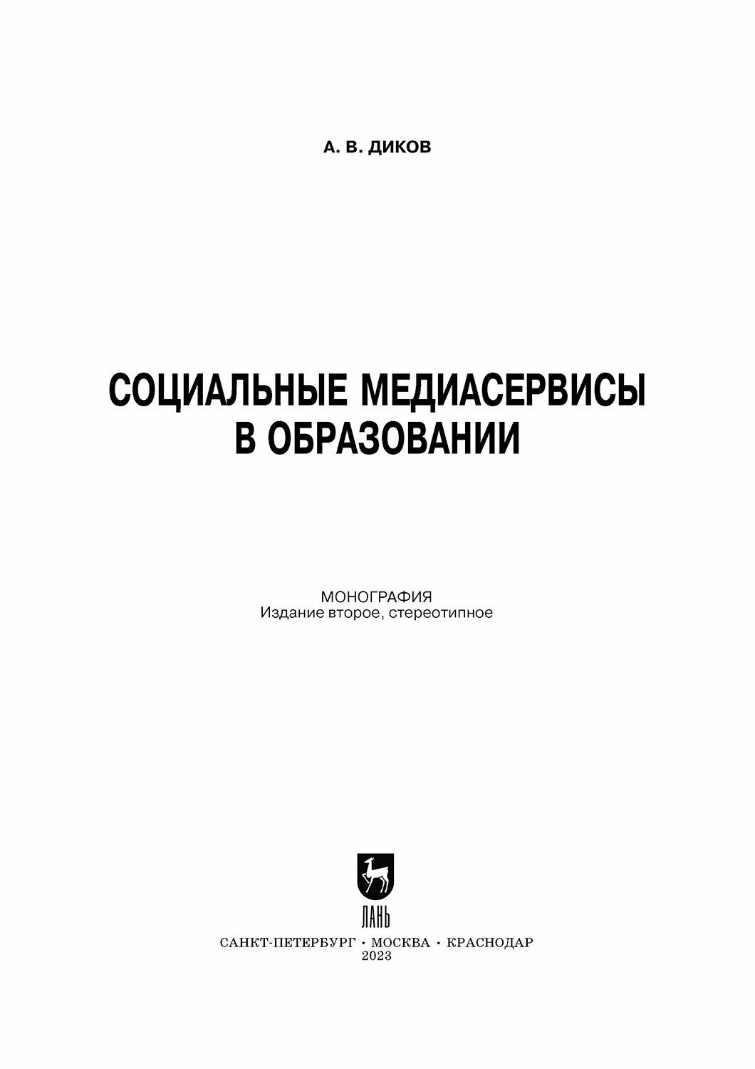 Социальные медиасервисы в образовании. Монография (А. В. Диков); Издательство ЛАНЬ, 2023