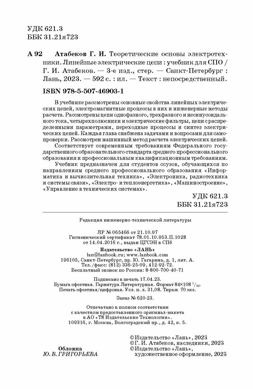 Сервис сравнения цен СкидкаГИД предлагает сравнить цены на товар «Книга: Теоретические основы электротехники. Линейные электрические цепи. Учебник для СПО (Г. И. Атабеков); Издательство ЛАНЬ, 2024»