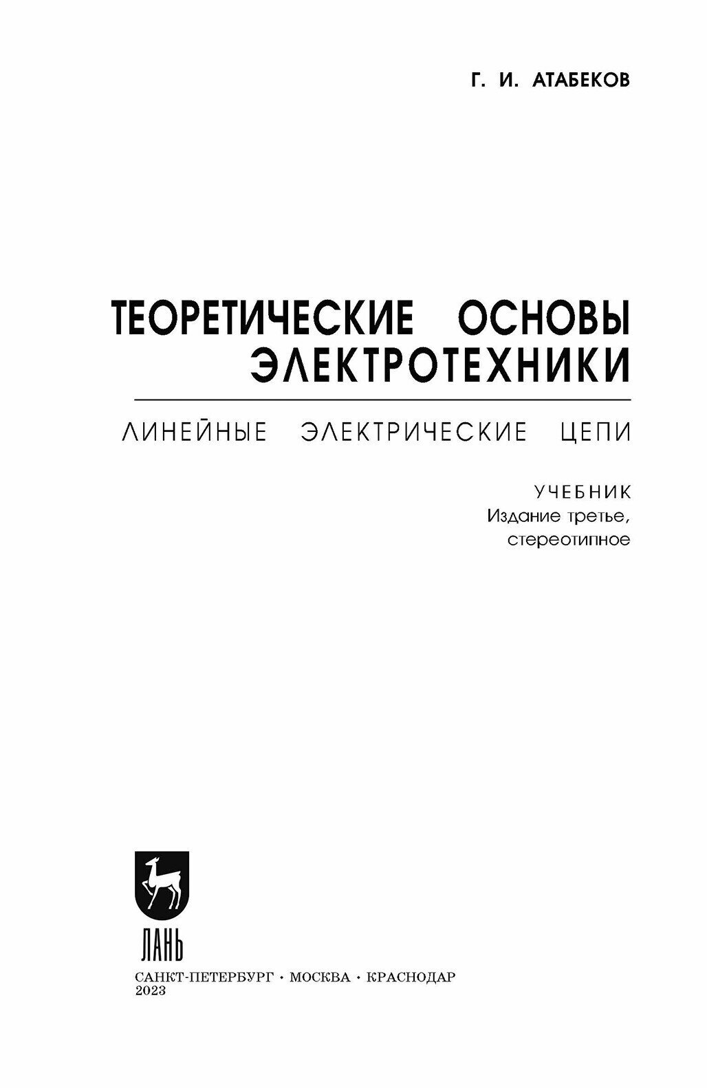 Теоретические основы электротехники. Линейные электрические цепи. Учебник для СПО (Г. И. Атабеков); Издательство ЛАНЬ, 2024