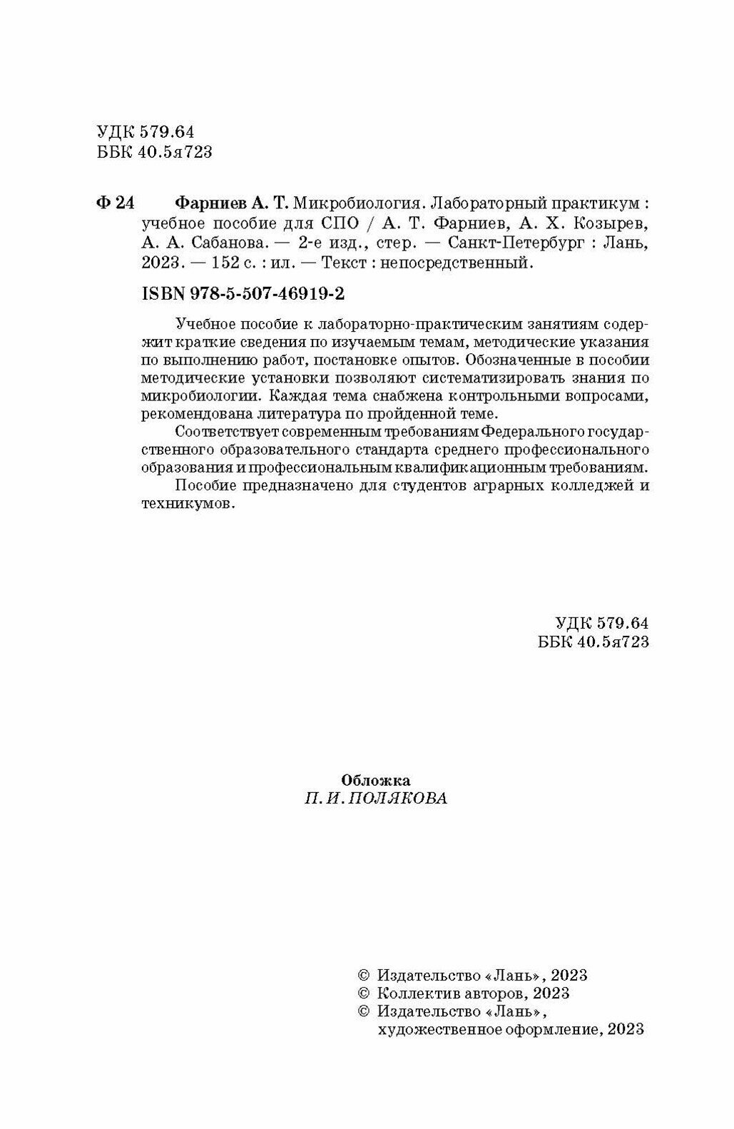 Учебное пособие к лабораторно-практическим занятиям содержит краткие сведения по изучаемым темам, методические указания по выполнению работ, постановке опытов. Обозначенные в пособии методические установки позволяют систематизировать знания по микробиологии. Каждая тема снабжена контрольными вопросами, рекомендована литература по пройденной теме. Соответствует современным требованиям Федерального государственного образовательного стандарта среднего профессионального образования и профессиональным квалификационным требованиям. Пособие предназначено для студентов аграрных колледжей и техникумов.