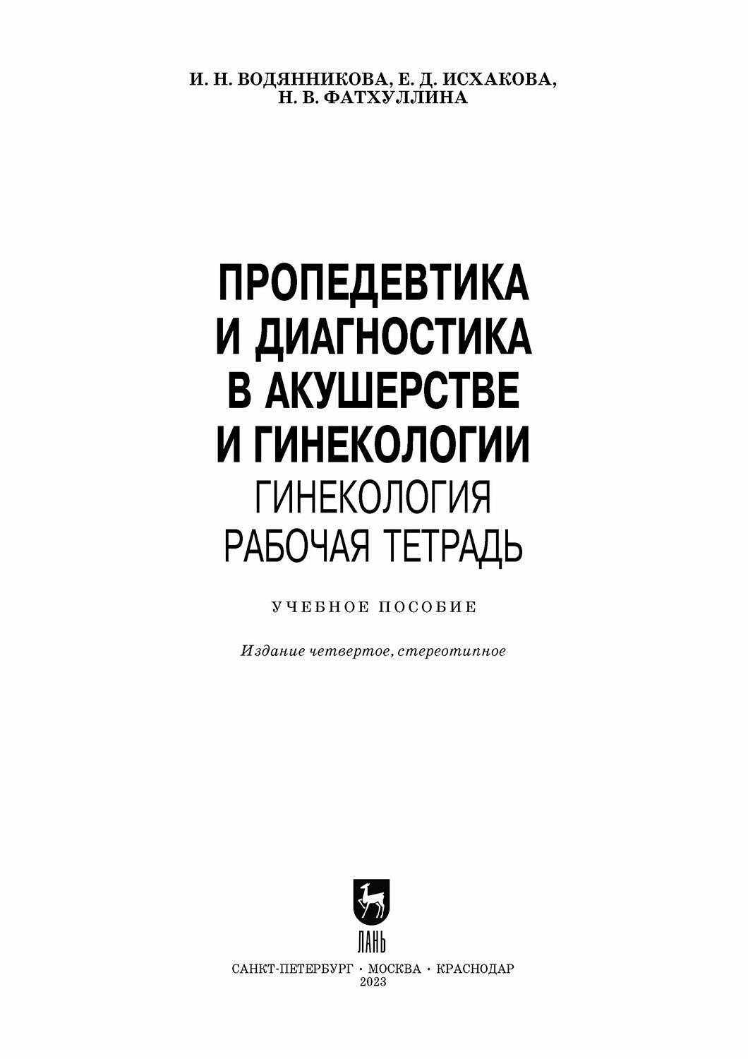 Пропедевтика и диагностика в акушерстве и гинекологии. Акушерство. Рабочая тетрадь. Учебное пособие для СПО (Водянникова Ирина Наилевна, Исхакова Елена Дамировна, Фатхуллина Нурия Вазировна); Лань, 2023