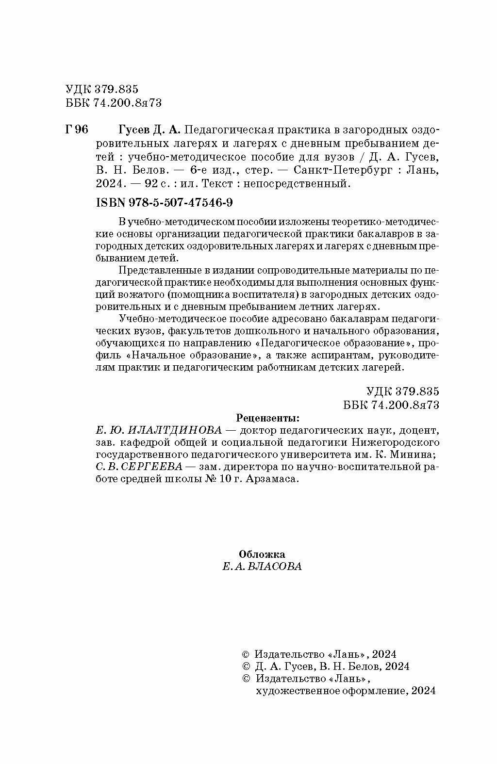 Сервис сравнения цен СкидкаГИД предлагает сравнить цены на товар «Книга: Педагогическая практика в загородных оздоровительных лагерях и лагерях с дневным пребыванием детей. Учебно-методическое пособие для вузов (В. Н. Белов); Издательство ЛАНЬ, 2023»