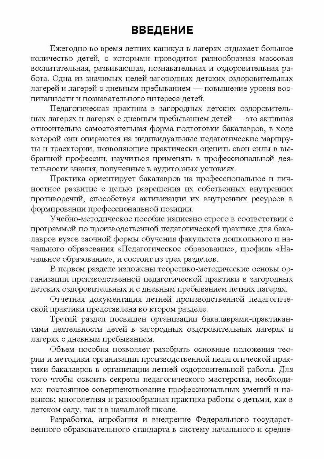 В учебно-методическом пособии изложены теоретико-методические основы организации педагогической практики бакалавров в загородных детских оздоровительных лагерях и лагерях с дневным пребыванием детей. Представленные в издании сопроводительные материалы по педагогической практике необходимы для выполнения основных функций вожатого (помощника воспитателя) в загородных детских оздоровительных и с дневным пребыванием летних лагерях. Учебно-методическое пособие адресовано бакалаврам педагогических вузов, факультетов дошкольного и начального образования, обучающихся по направлению «Педагогическое образование», профиль «Начальное образование», а также аспирантам, руководителям практик и педагогическим работникам детских лагерей.