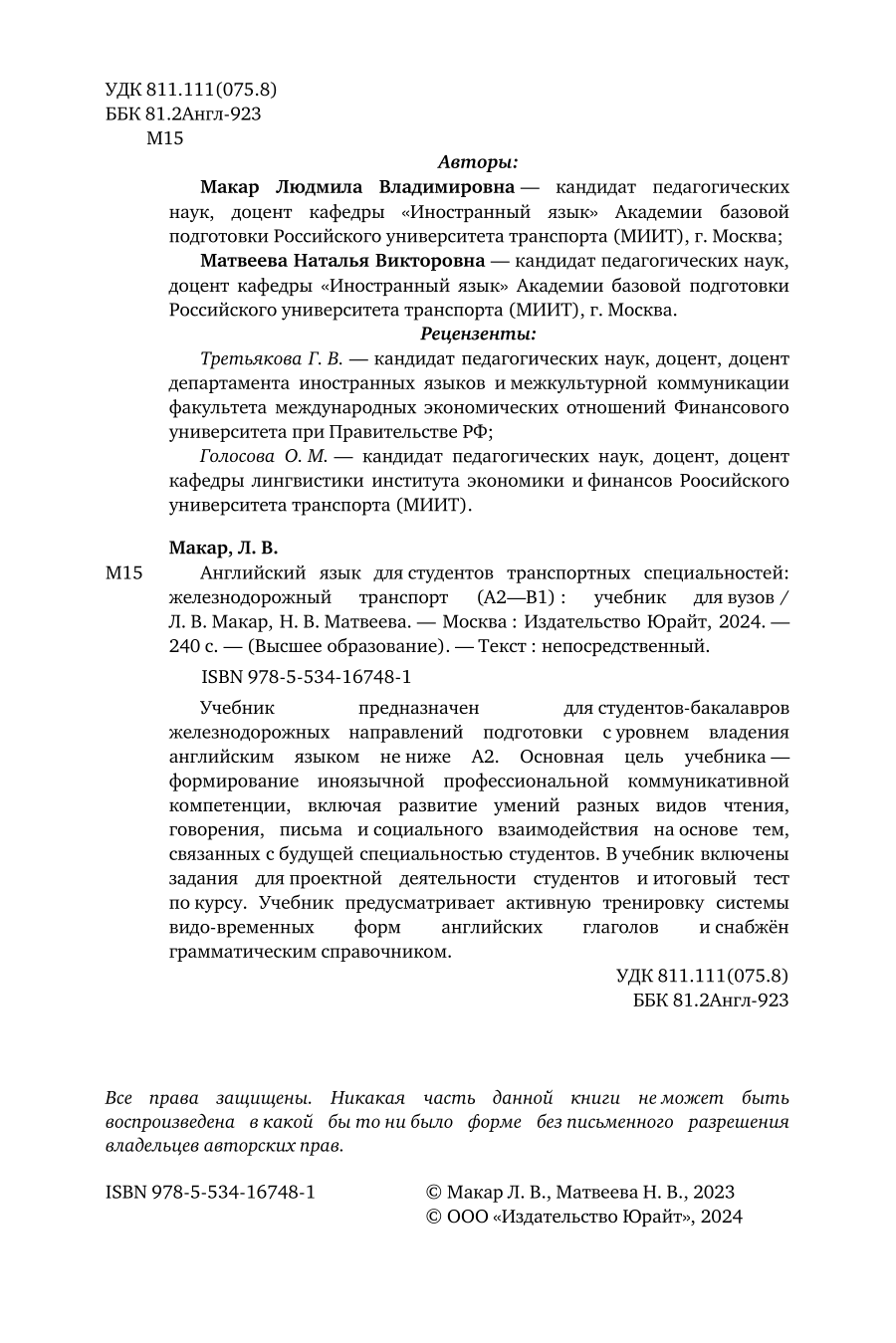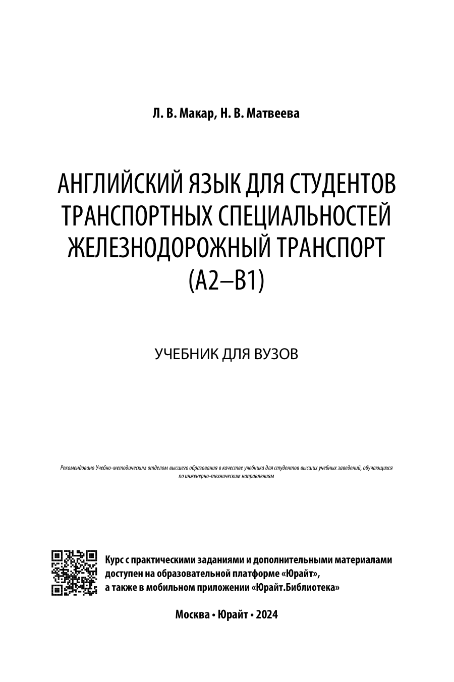 Английский язык для студентов транспортных специальностей: железнодорожный транспорт (A2-B1). Учебник для вузов (Людмила Владимировна Макар); ЮРАЙТ, 2023