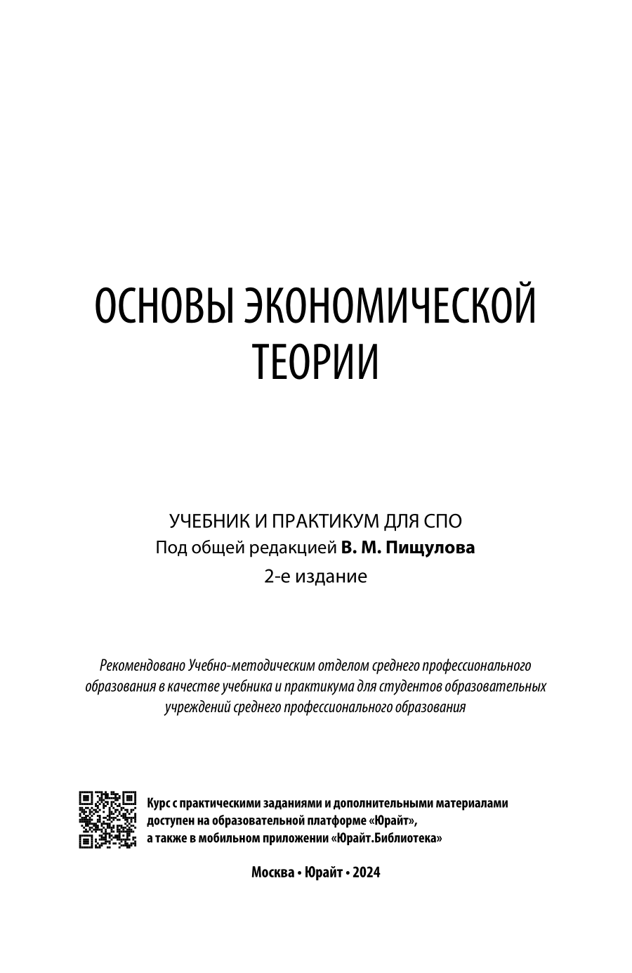 Основы экономической теории 2-е изд. Учебник и практикум для СПО (Оксана Павловна Вагнер); ЮРАЙТ, 2023