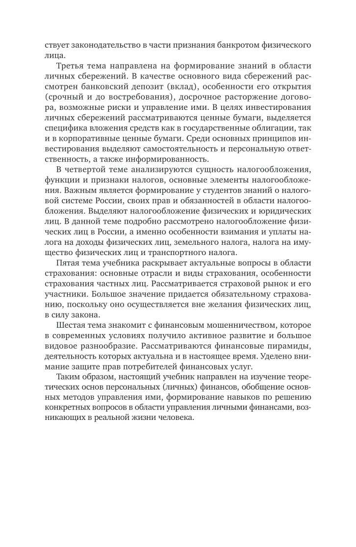 В учебнике освещается широкий круг вопросов, посвященных основам финансовой грамотности. Обучающиеся приобретут и углубят свои знания по актуальным вопросам управления личными финансами в современных условиях развития экономики России, ознакомятся с основами банковского кредитования, страхования, налогообложения физических лиц, овладеют навыками по решению конкретных вопросов в области формирования сбережений. Соответствует требованиям федеральных государственных образовательных стандартов среднего общего образования и среднего профессионального образования. Учебник ориентирован на среднее общее образование в пределах освоения образовательной программы СПО на базе основного общего образования.