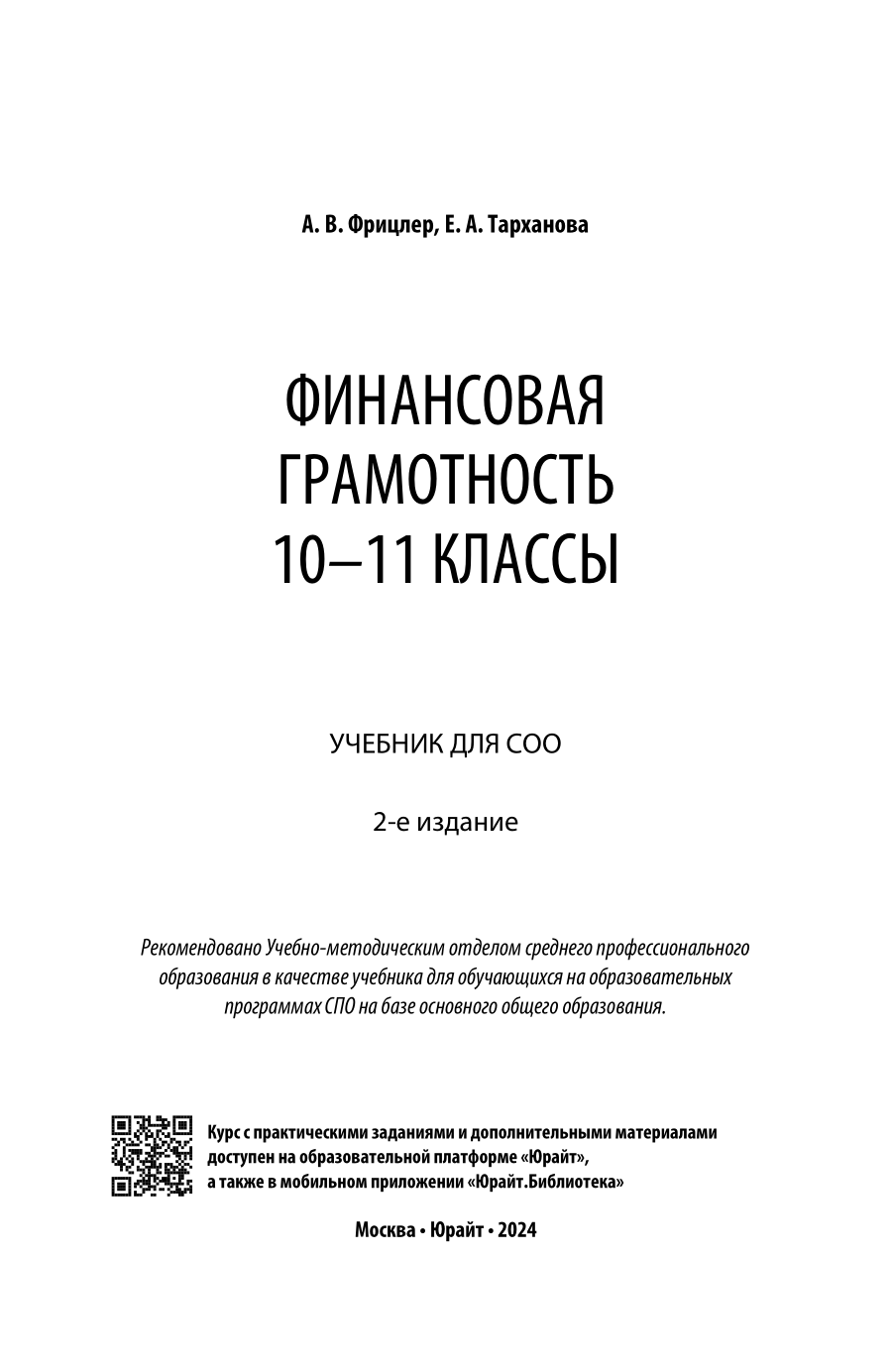 Финансовая грамотность: 10-11 классы 2-е изд. Учебник для СОО (Елена Александровна Тарханова); ЮРАЙТ, 2023