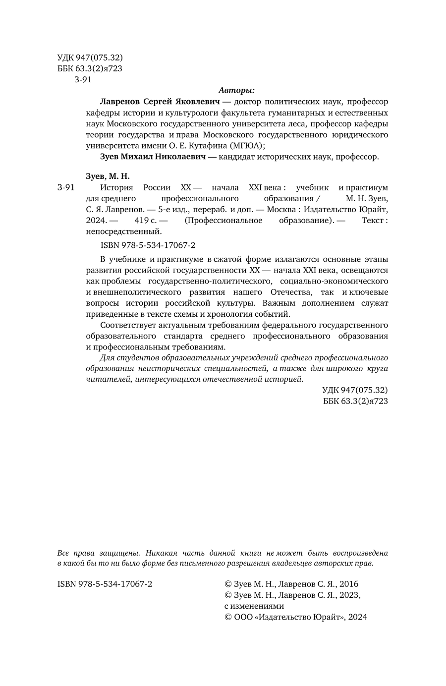 История России ХХ - начала ХХI века 5-е изд. пер. и доп. Учебник и практикум для СПО (Михаил Николаевич Зуев); ЮРАЙТ, 2023