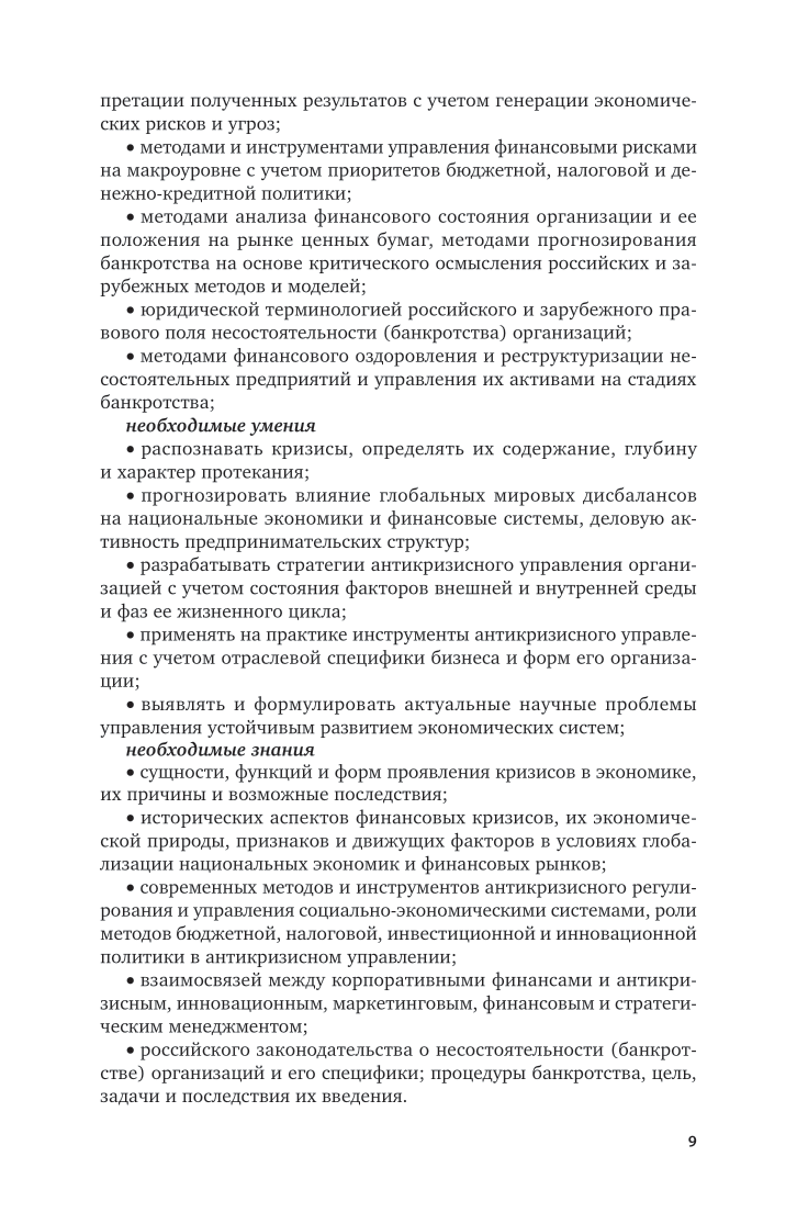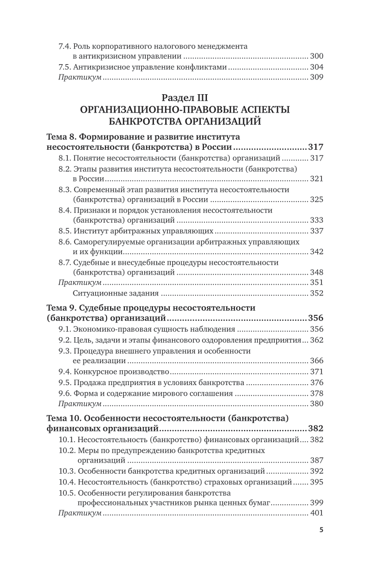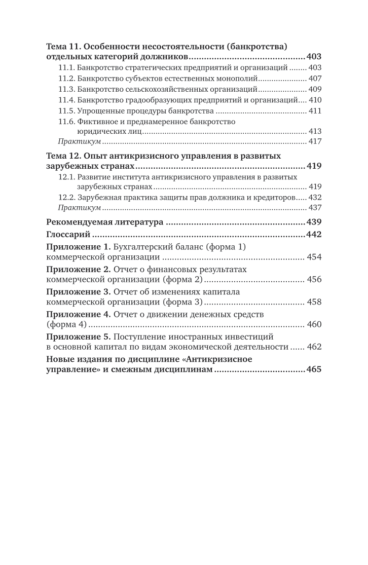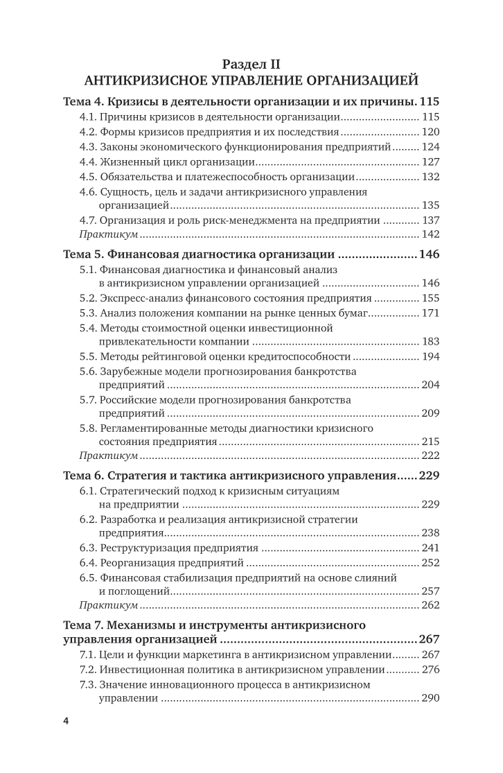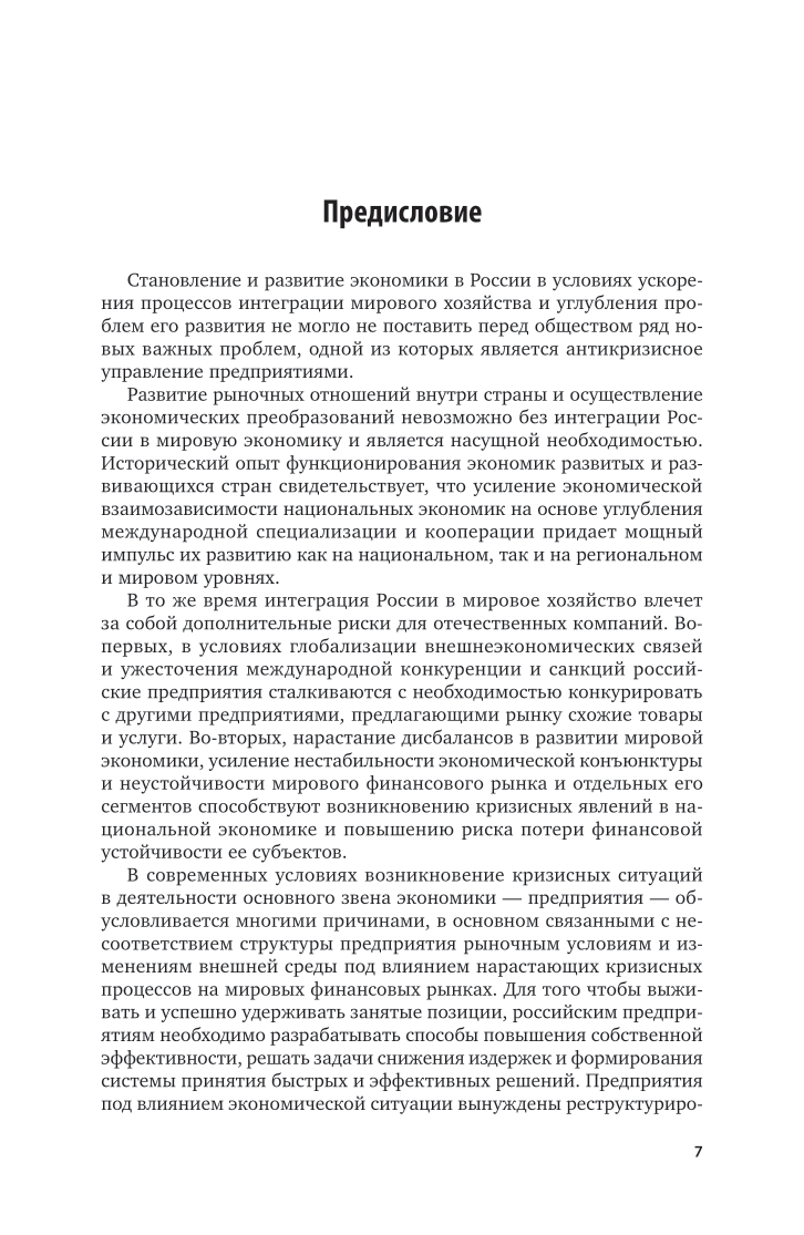 В курсе представлены как традиционные методы и инструменты антикризисного регулирования в контексте переосмысления их использования в условиях современной экономической нестабильности, так и современные идеи и методики с учетом их адаптации к условиям внешней и внутренней предпринимательской среды российской экономики. Рассматривается широкий спектр теоретических и практических вопросов, позволяющих оценить и принять управленческие решения в разных экономических условиях. Раскрываются формы, методы и инструменты регулирования экономических процессов; зарубежные и отечественные модели прогнозирования банкротства предприятий; опыт антикризисного управления в развитых странах; финансовая диагностика предприятия в зависимости от направления деятельности и др. Особое внимание в курсе уделено современным проблемам функционирования российских предприятий в условиях нестабильности мировой экономики, роста политической напряженности и обострения борьбы за ресурсы на международной арене. Представленные теоретические и практические вопросы антикризисного управления основаны на современных событиях, иллюстрируются практическими данными и статистической информацией. Соответствует актуальным требованиям федерального государственного образовательного стандарта среднего профессионального образования и профессиональным требованиям. Для студентов образовательных учреждений среднего профессионального образования.
