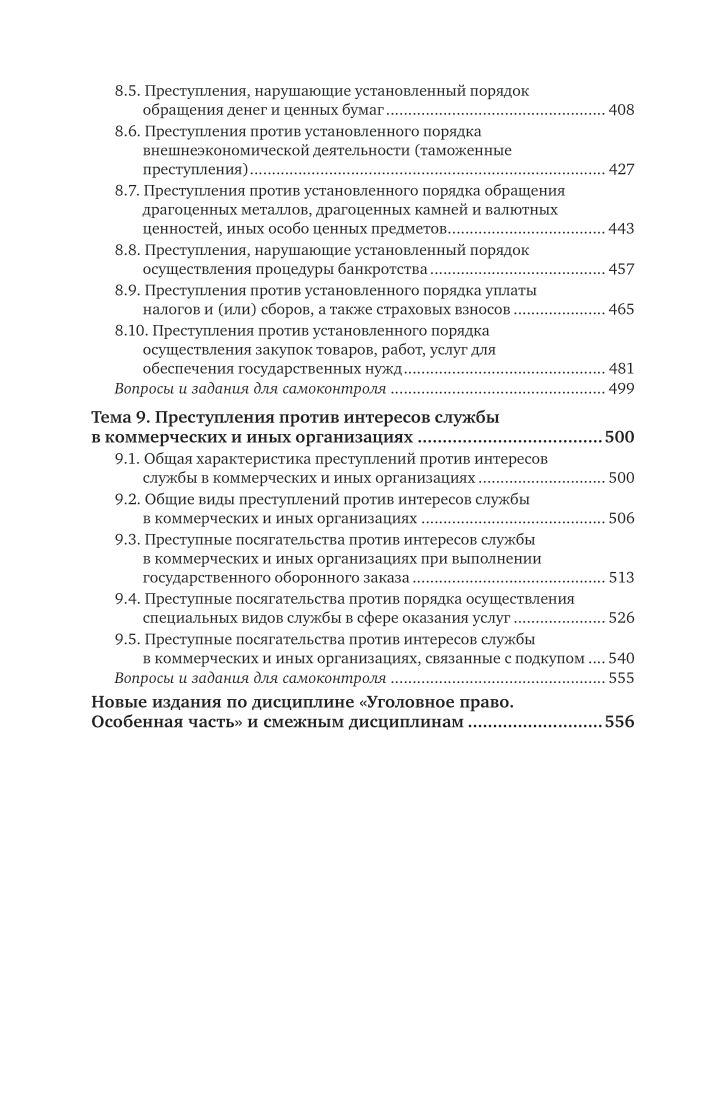 Курс подготовлен на основе действующего российского законодательства с анализом последних изменений и дополнений (по состоянию уголовного и смежного законодательства на 1 апреля 2023 г.). В издании рассмотрены все базовые положения Особенной части уголовного права. Материал изложен в доступной для быстрого и эффективного усвоения учебного курса форме. Соответствует актуальным требованиям федерального государственного образовательного стандарта высшего образования. Для студентов, аспирантов, преподавателей юридических факультетов вузов, научных сотрудников, а также работников суда и правоохранительных органов.