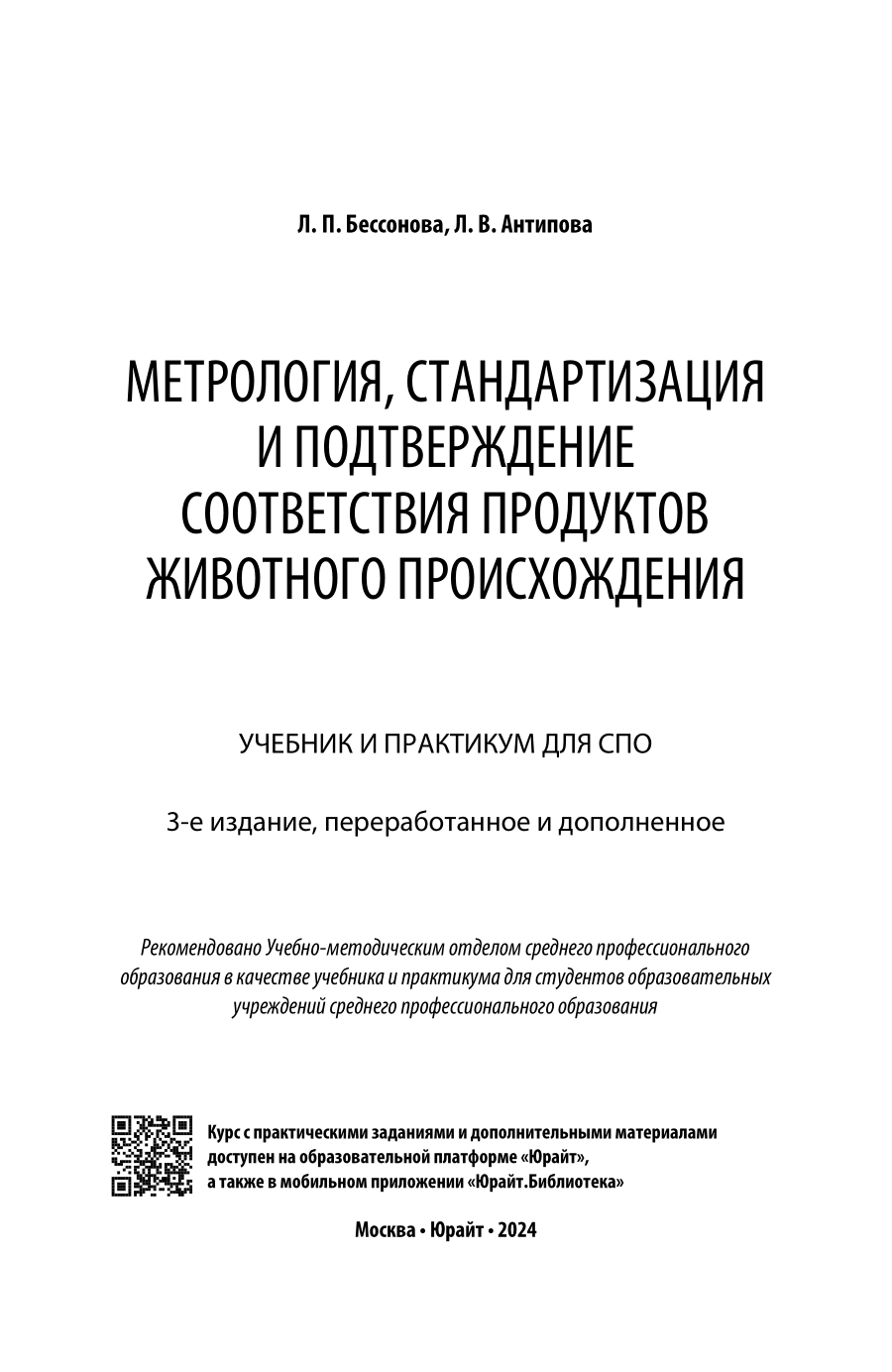 На сегодняшний день товар «Книга: Метрология стандартизация и подтверждение соответствия продуктов животного происхождения 3-е изд. пер. и доп. Учебник и практикум для СПО (Людмила Васильевна Антипова); ЮРАЙТ, 2023» можно купить с кешбеком в 1 магазине: ЛитРес